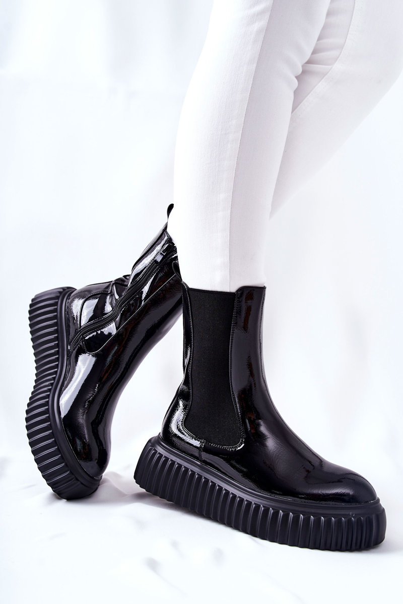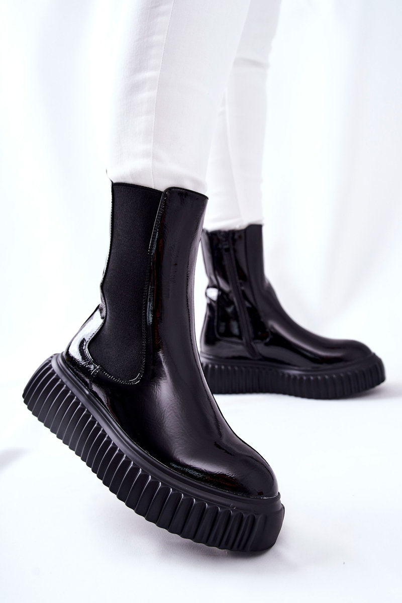 Wysokie Lakierowane Botki Na Platformie Czarne Sereia