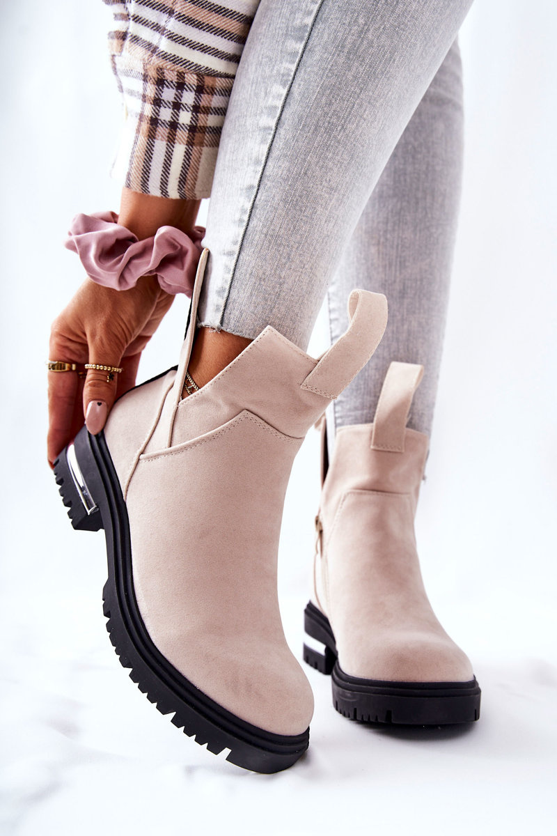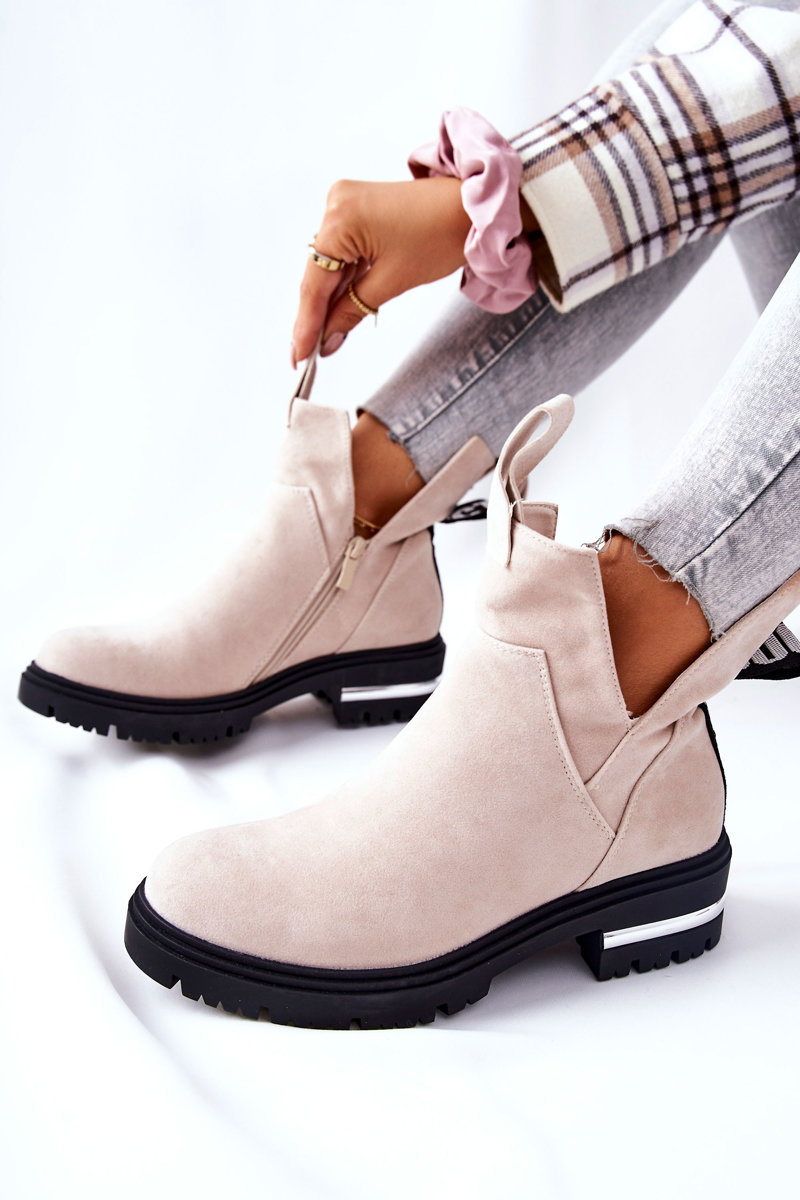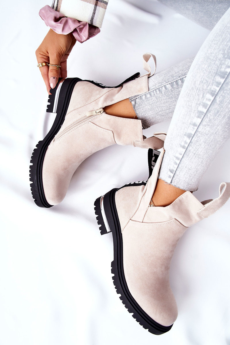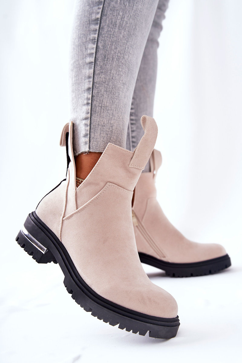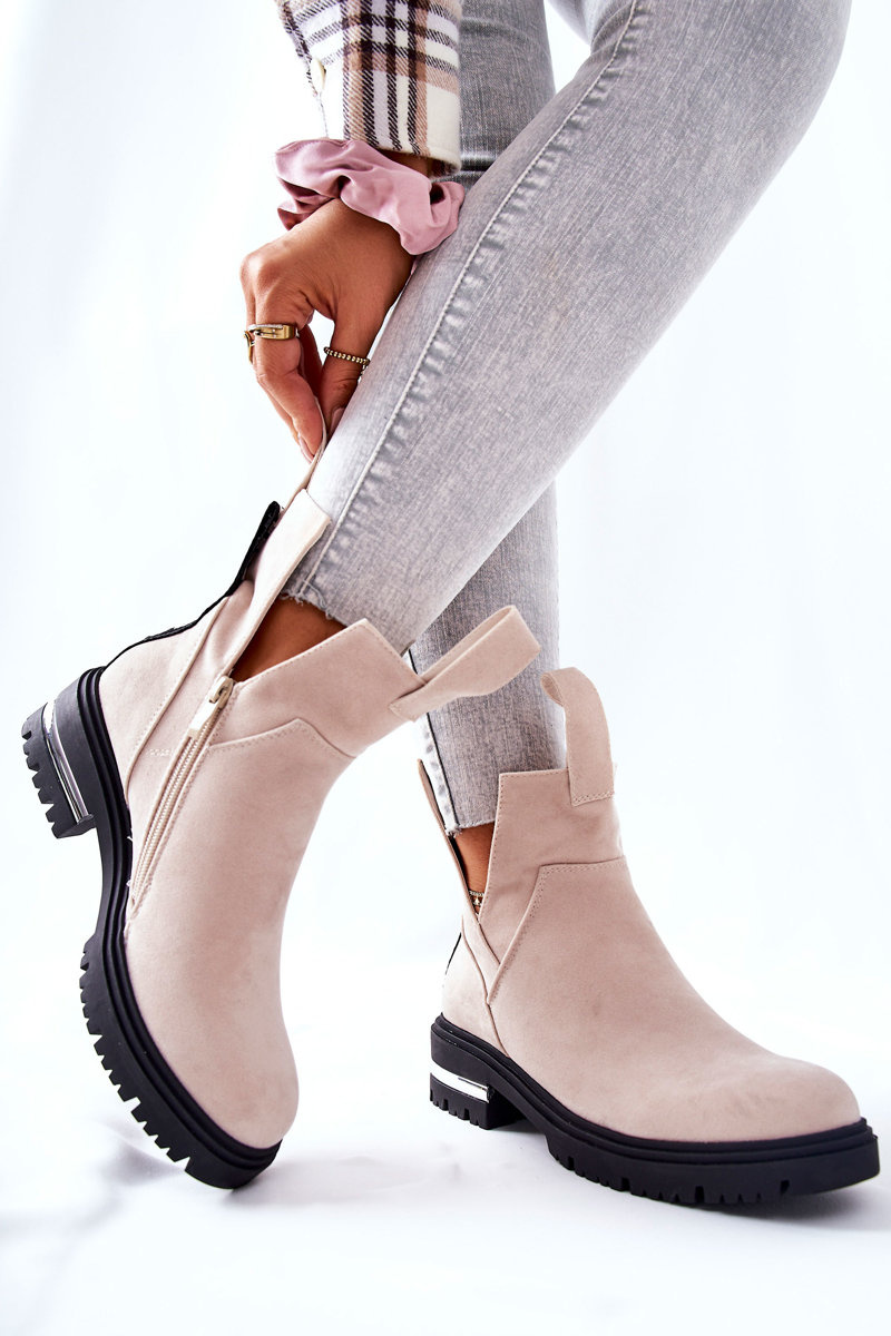 Ocieplane Botki Sztyblety Z Suwakiem Beżowe My Way
