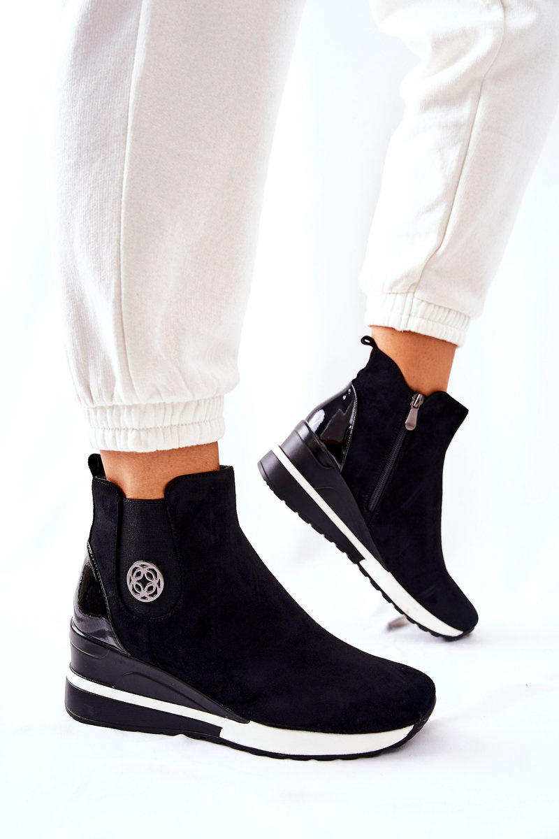 Zamszowe Botki Na Koturnie Czarne Lunelle