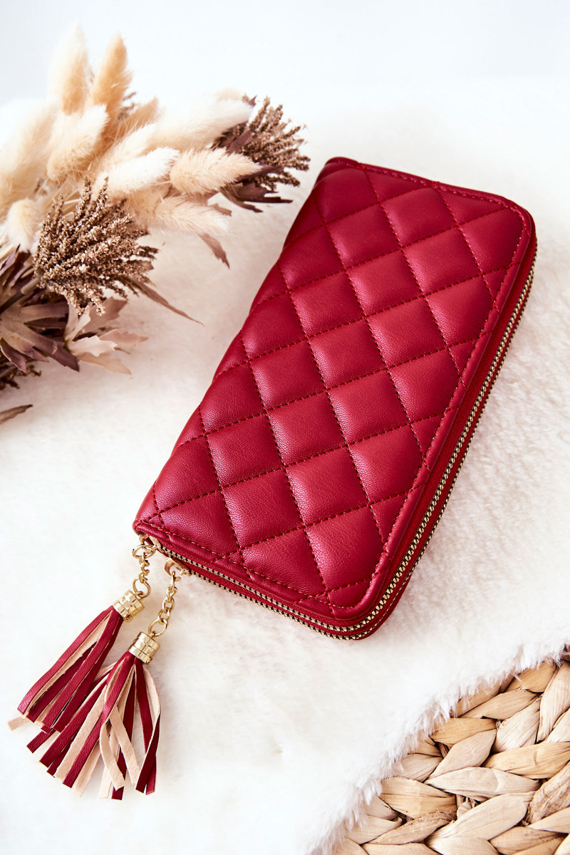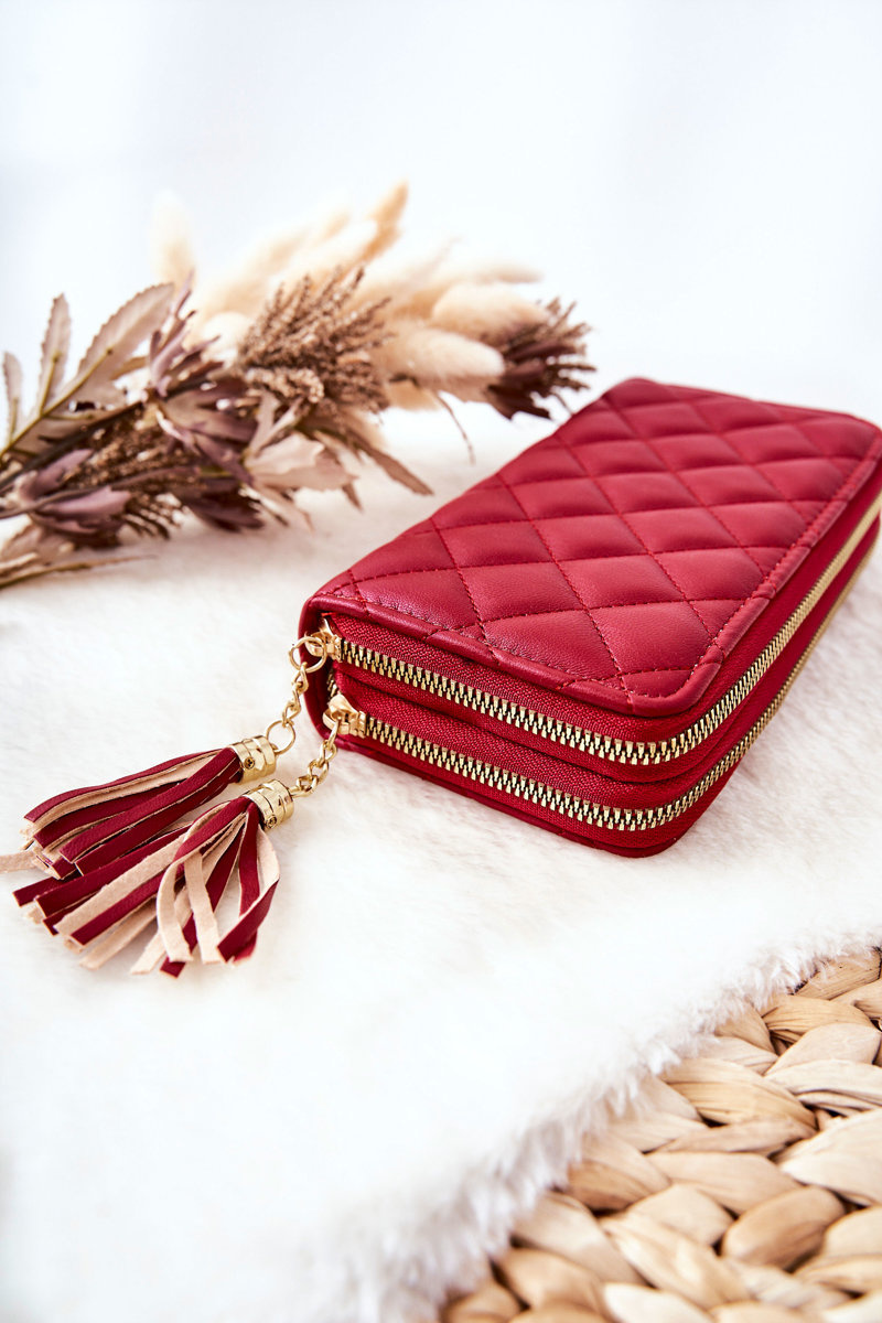 Duży Pikowany Portfel Na Suwaki Czerwony