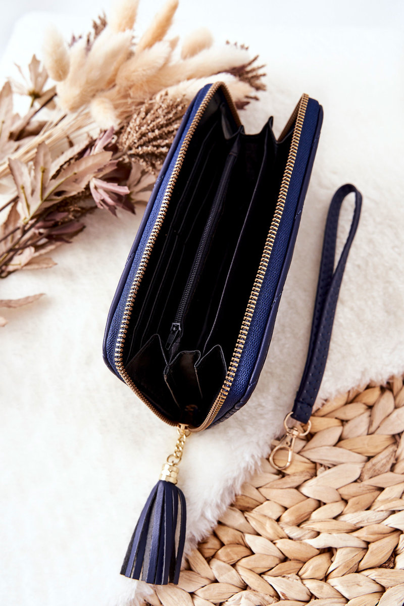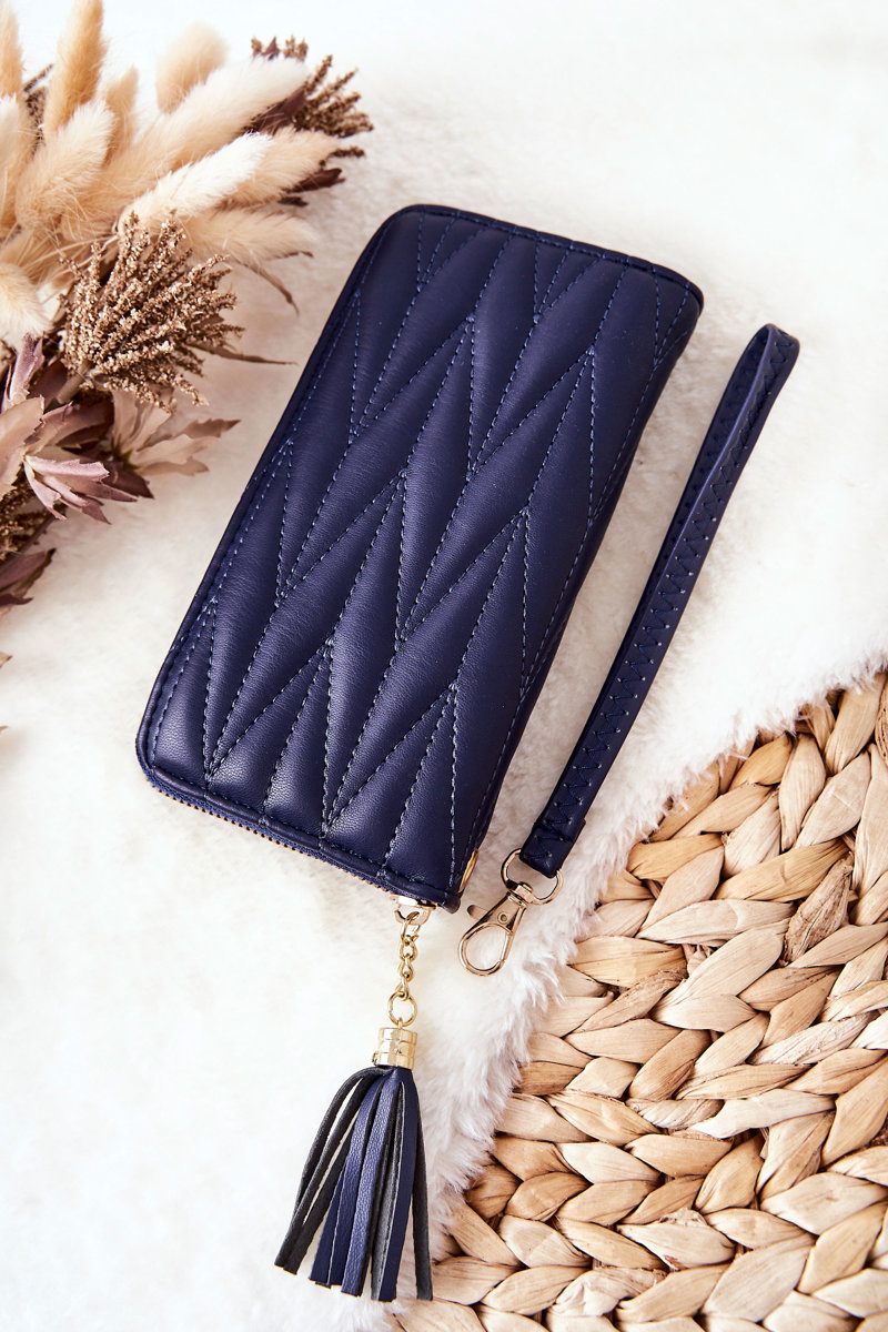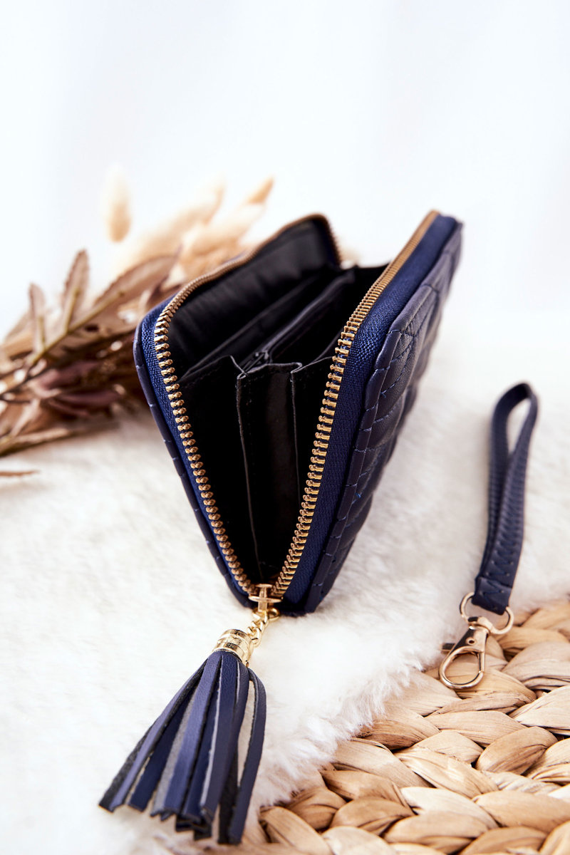Duży Portfel Pikowany Na Suwak Z Paseczkiem Granatowy