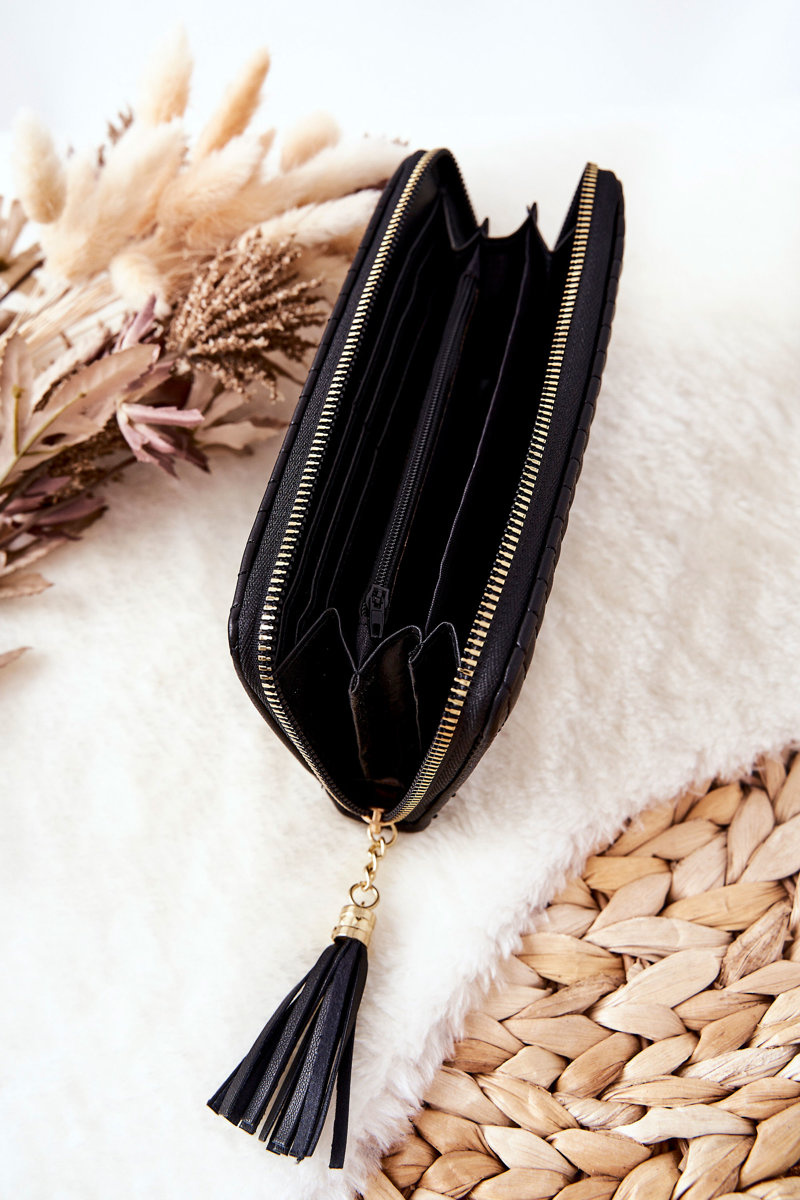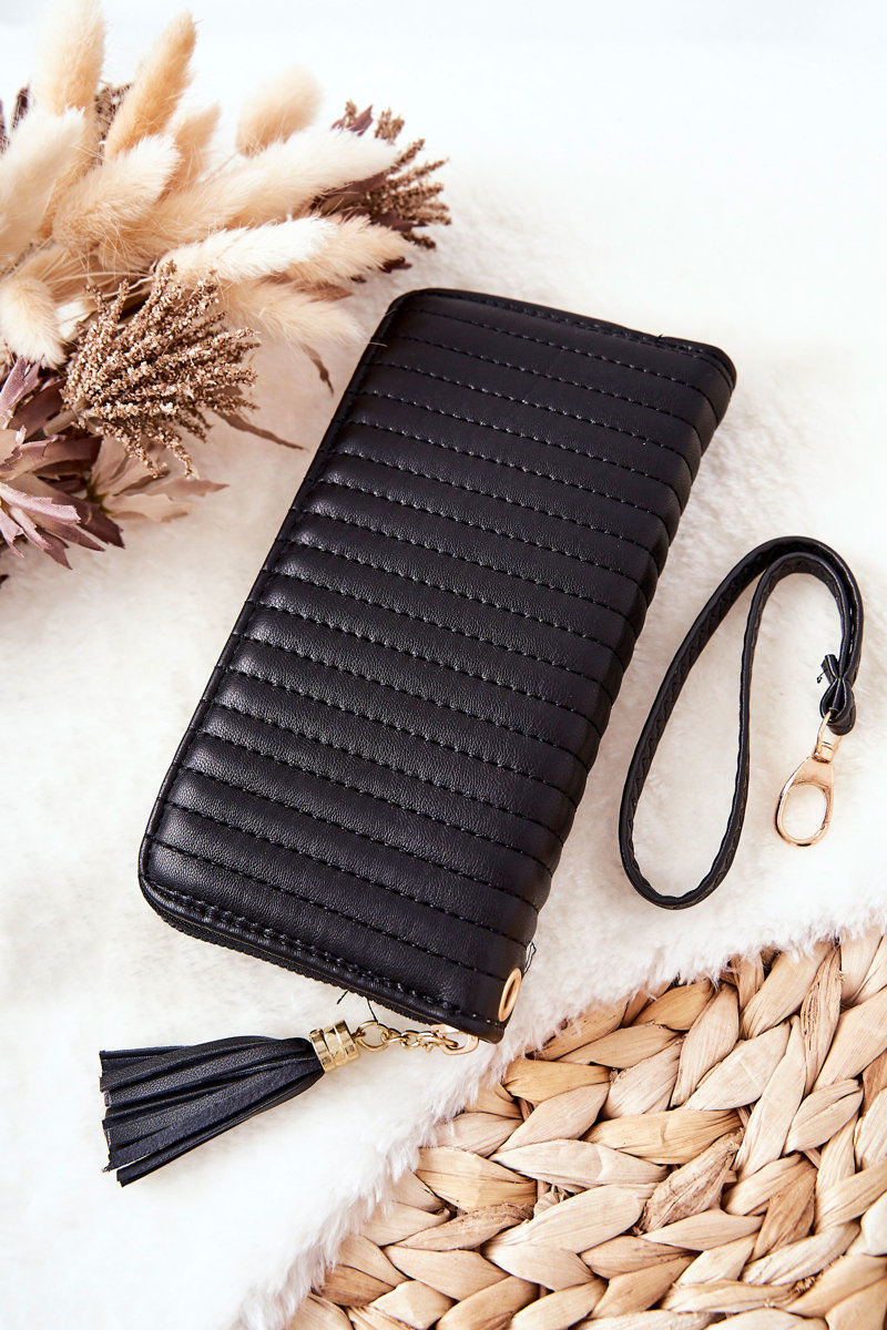 Duży Portfel Pikowany Z Paseczkiem Czarny