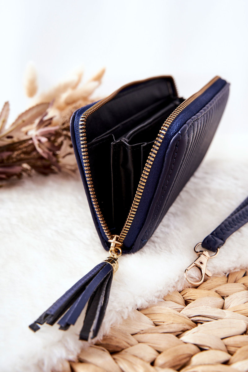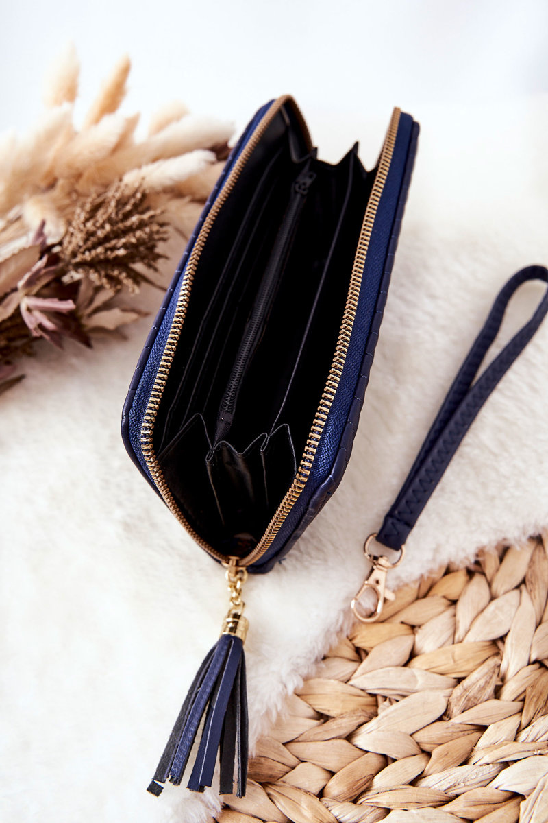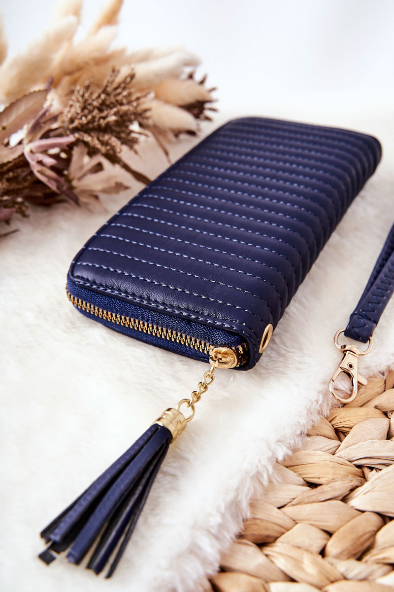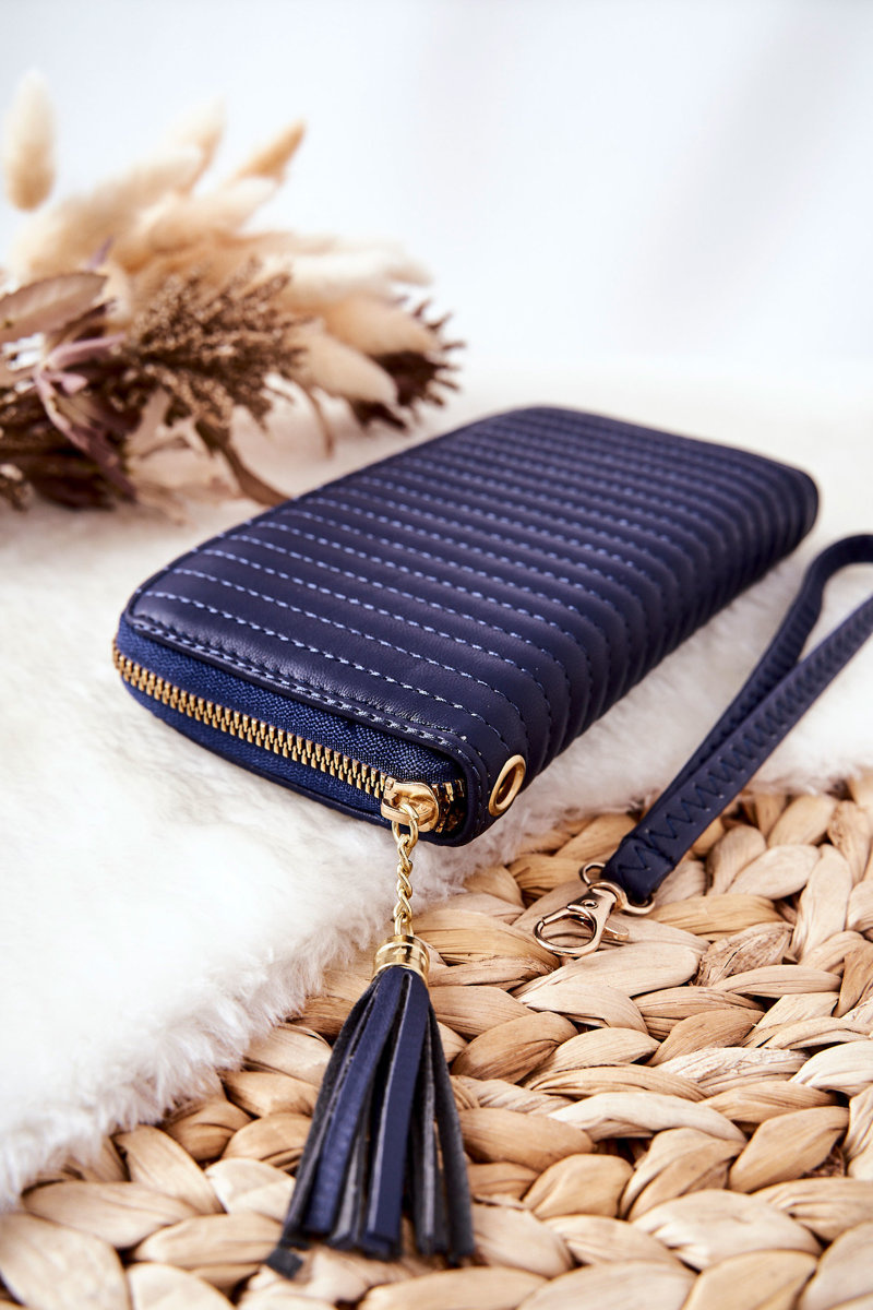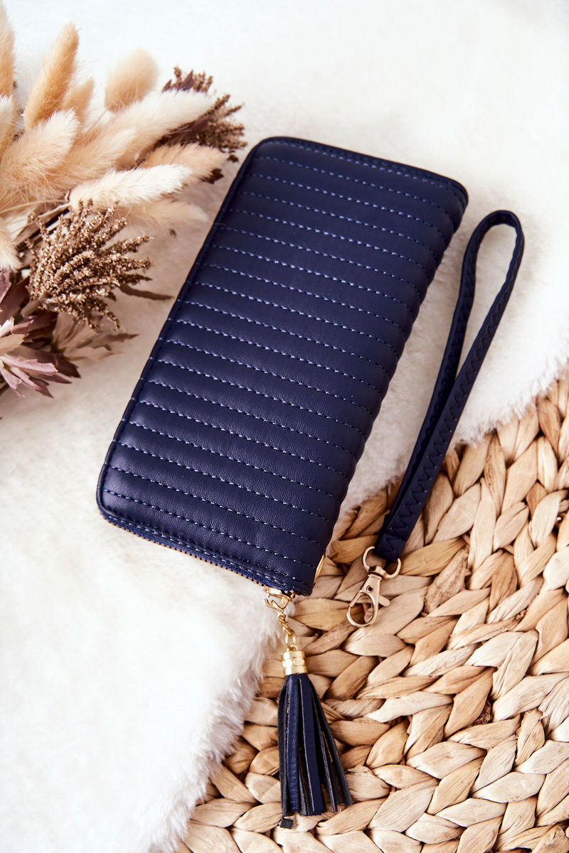 Duży Portfel Pikowany Z Paseczkiem Granatowy
