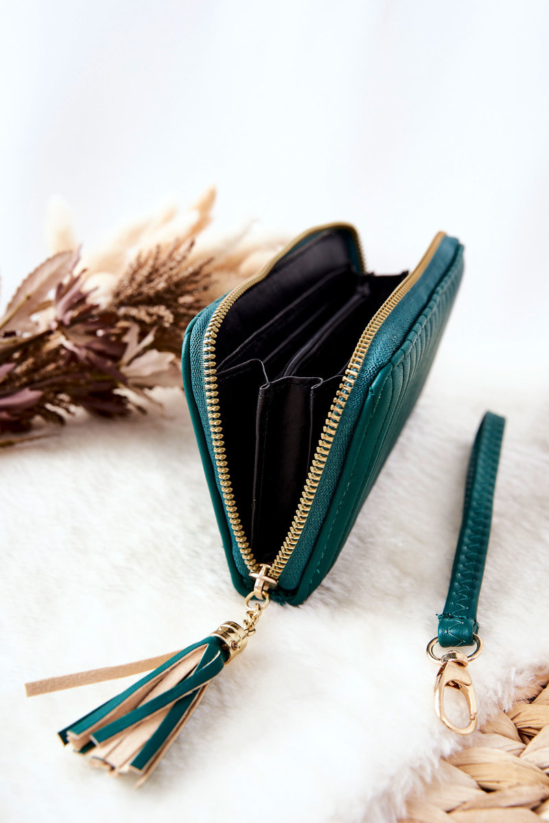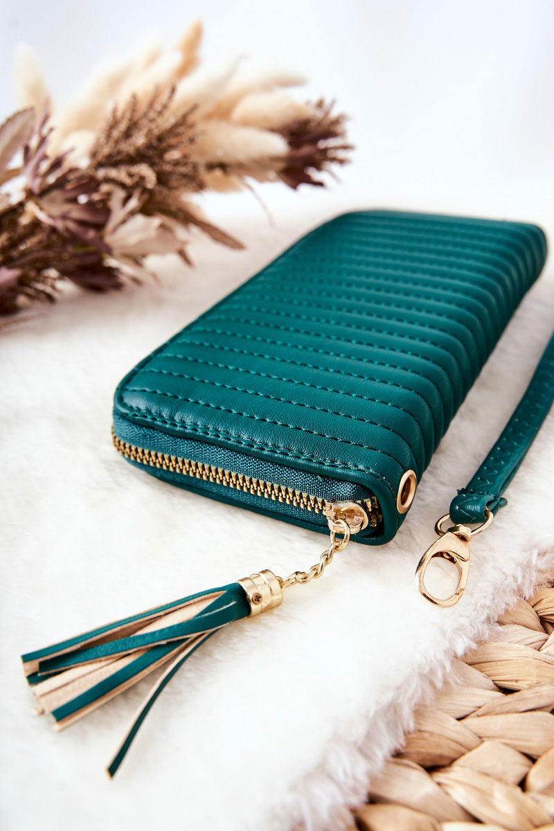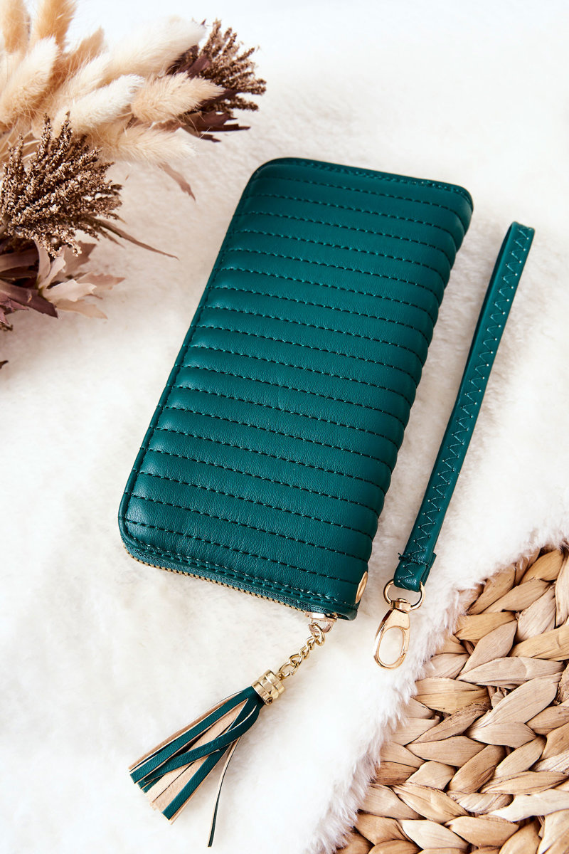 Duży Portfel Pikowany Z Paseczkiem Zielony