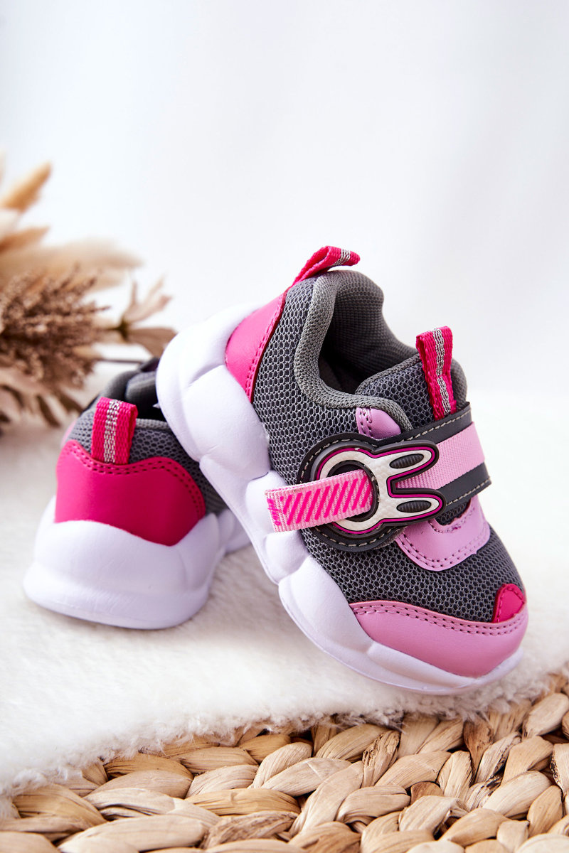Dziecięce Sportowe Buty Na Rzep Befado 516P091 Szaro-Różowe
