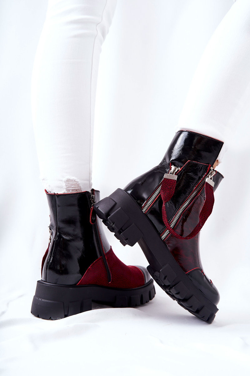 Skórzane Botki Sztyblety Maciejka Czarno-Bordowe 05137-33