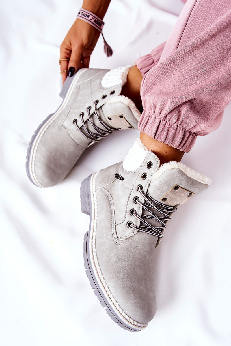 Skórzane Trapery Z Ociepleniem Jasnoszare Laralis
