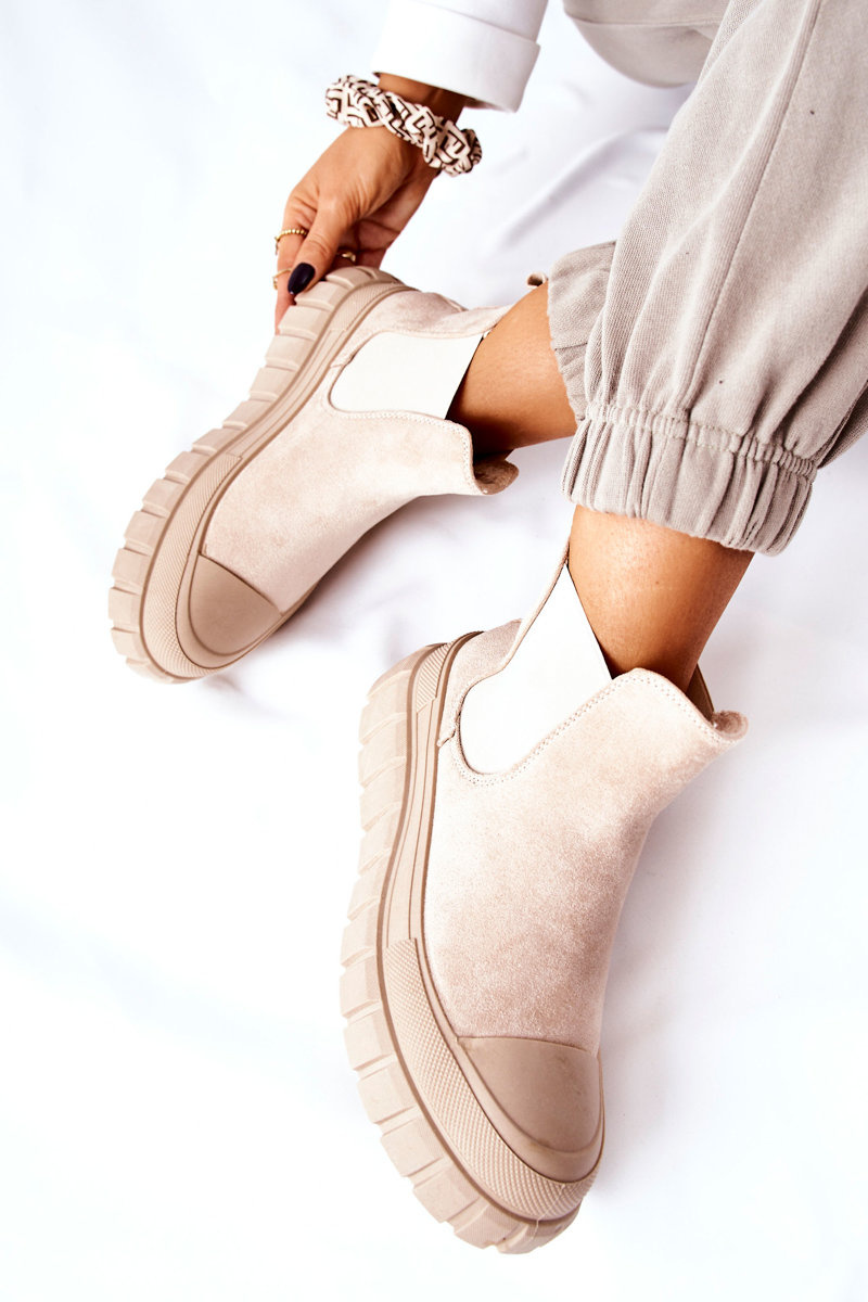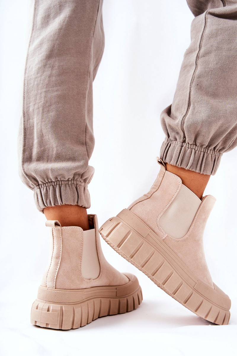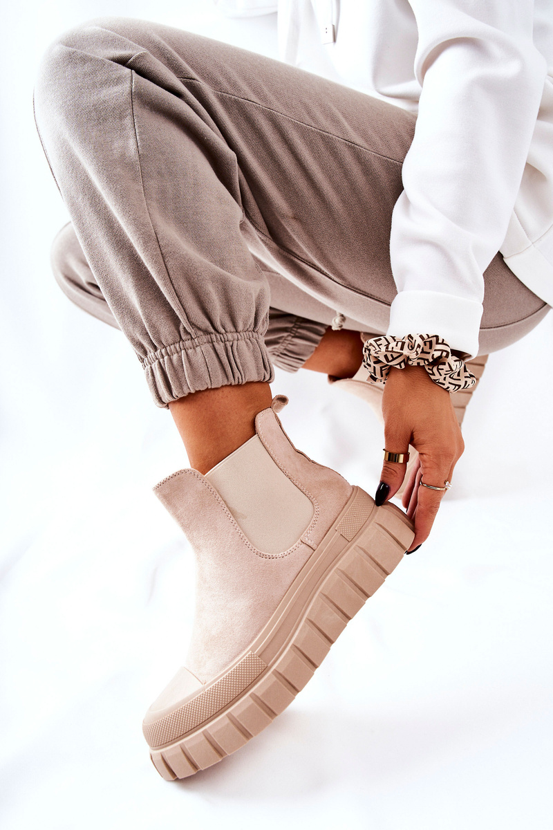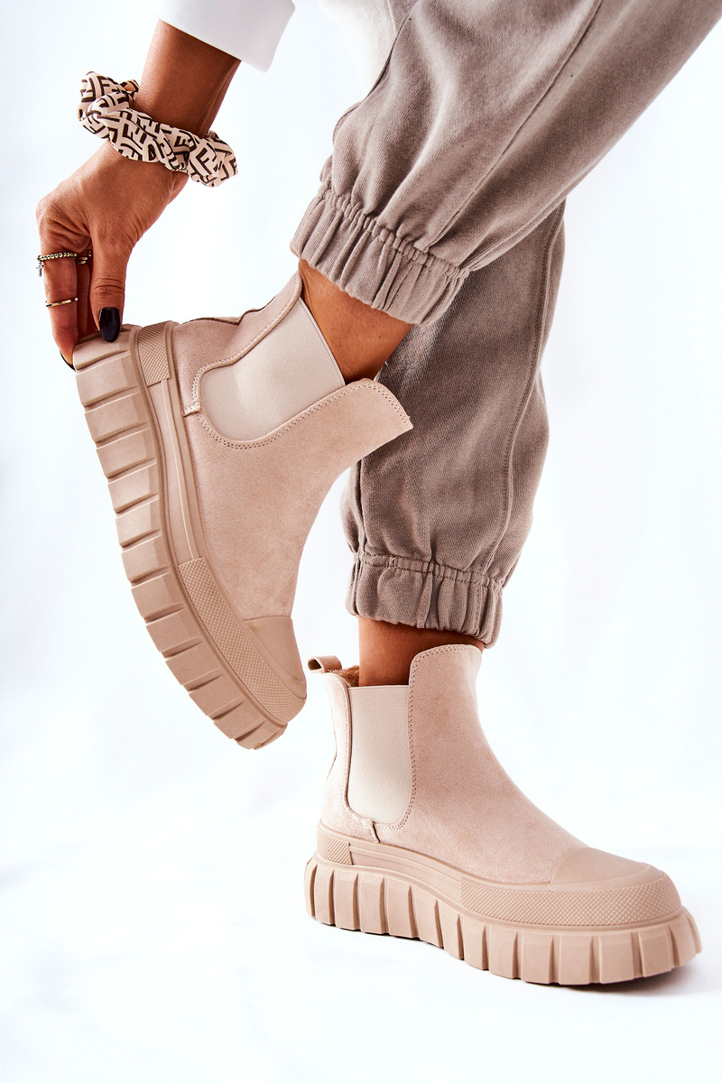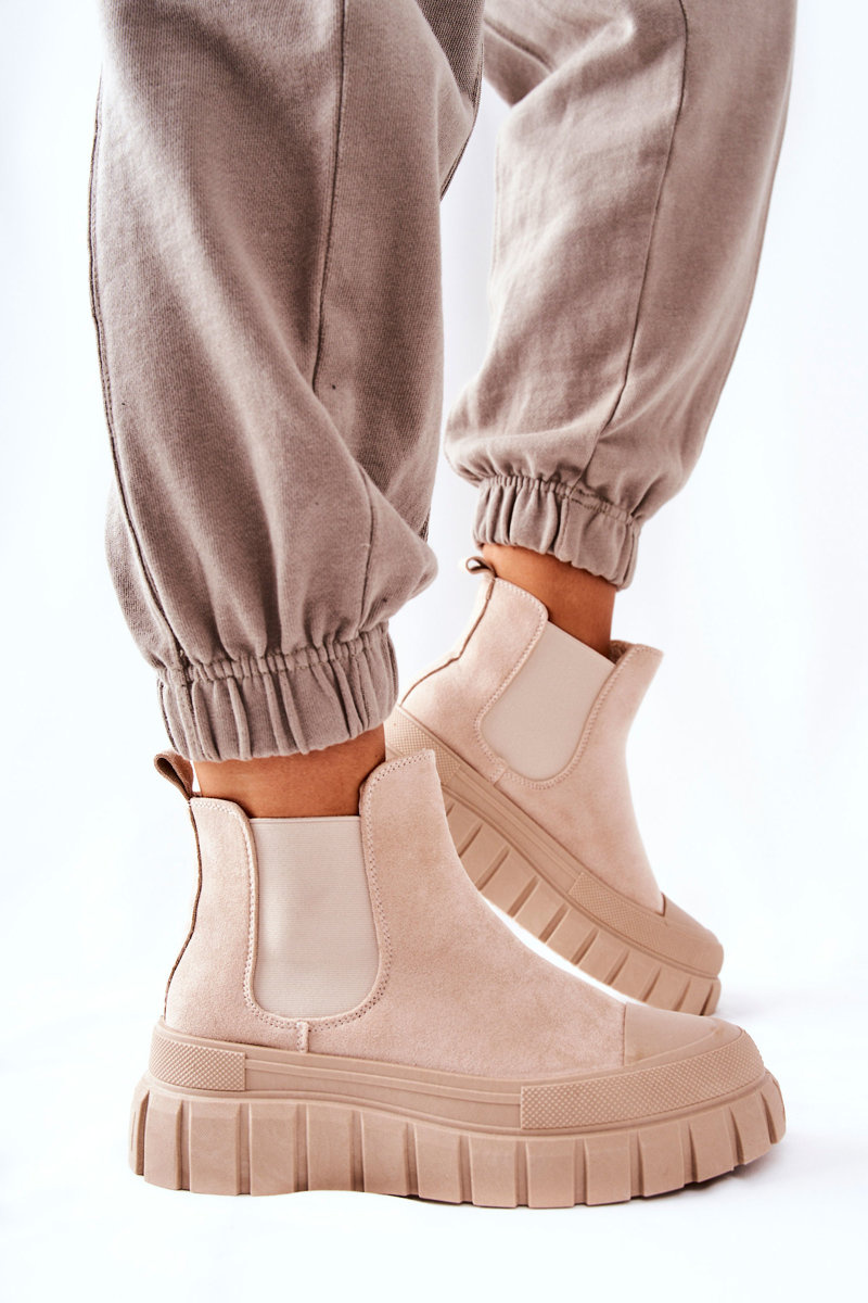 Zamszowe Botki Na Platformie Beżowe Jennily
