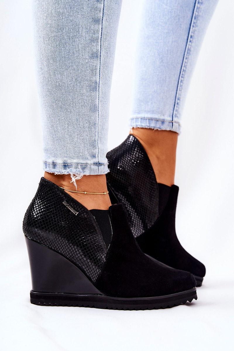 Botki Na Koturnie Zwierzęcy Wzór Monnari 0990-020 Czarne