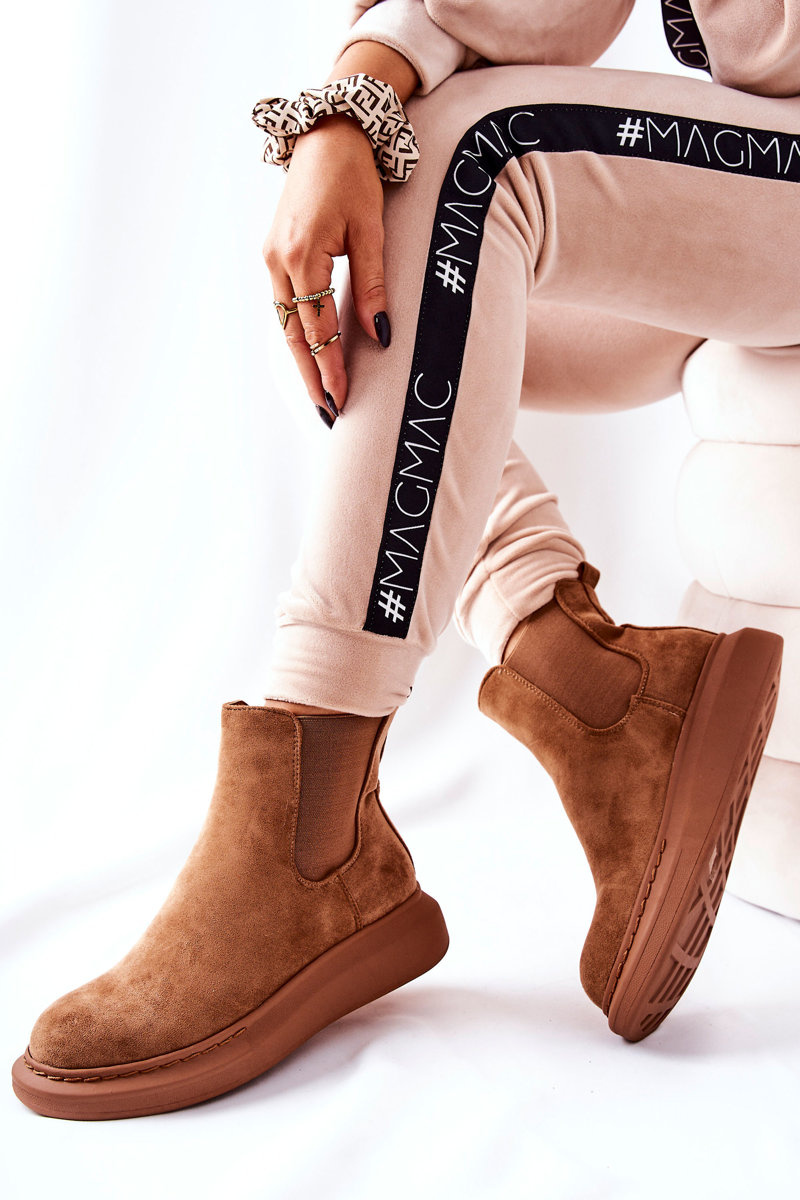 Zamszowe Botki Sztyblety Na Platformie Beżowe Marissa