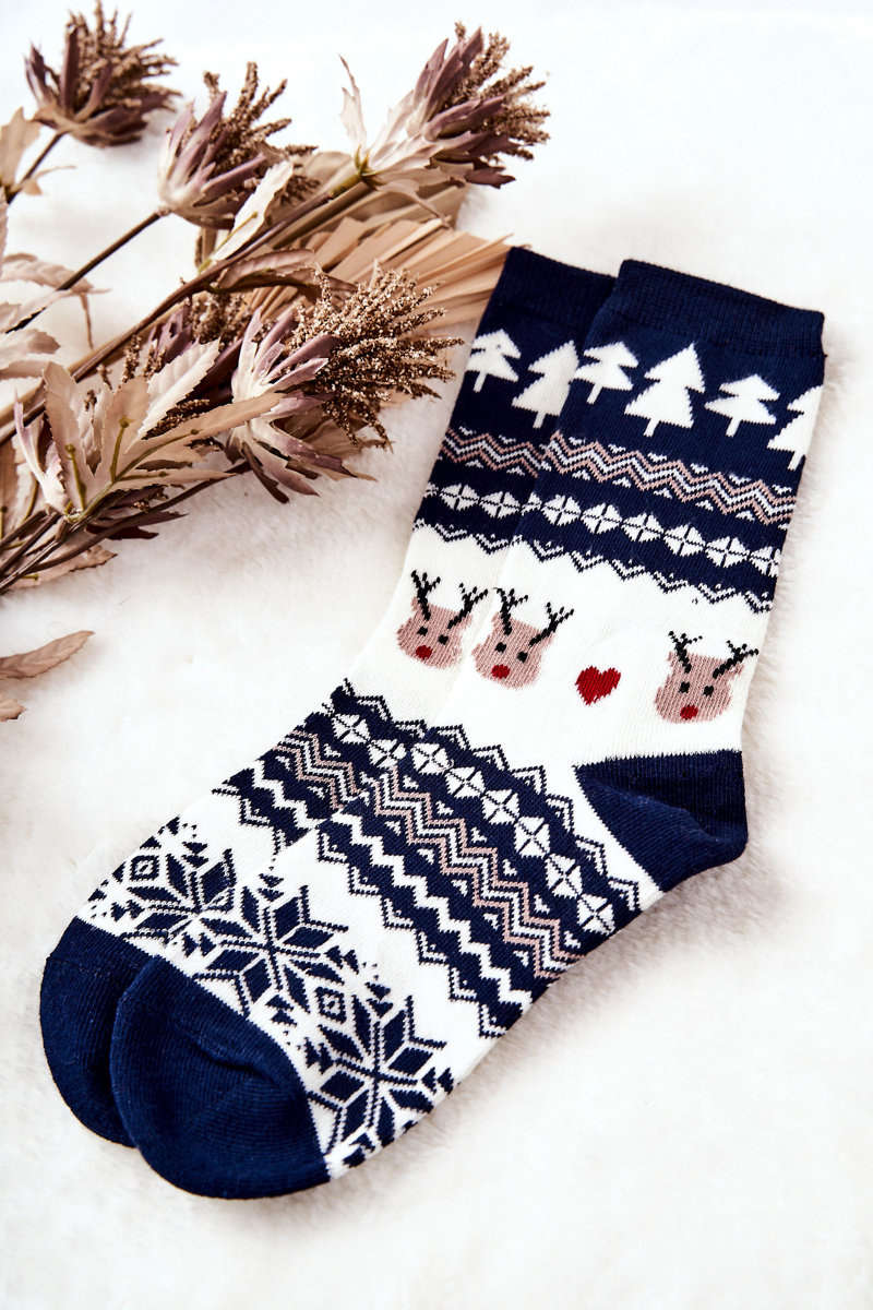 Skarpetki W Świąteczny Wzór Granatowo-Białe