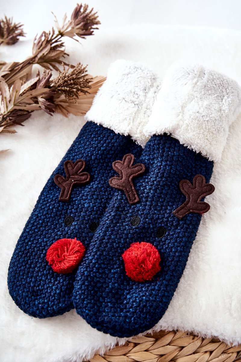 Świąteczne Skarpetki Długie Renifer Granatowe