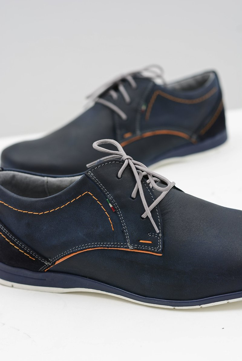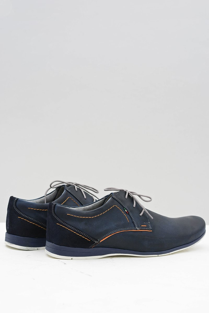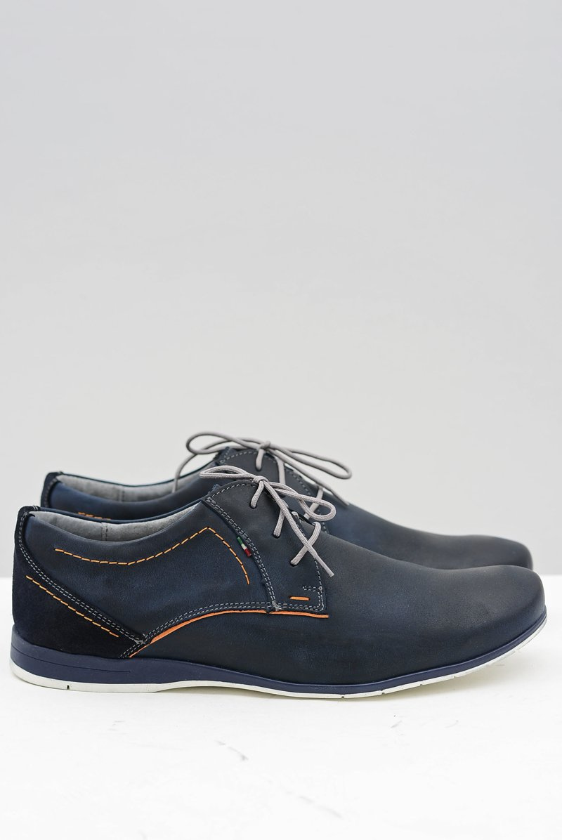 Granatowe Męskie Skórzane Półbuty Casual Badoo
