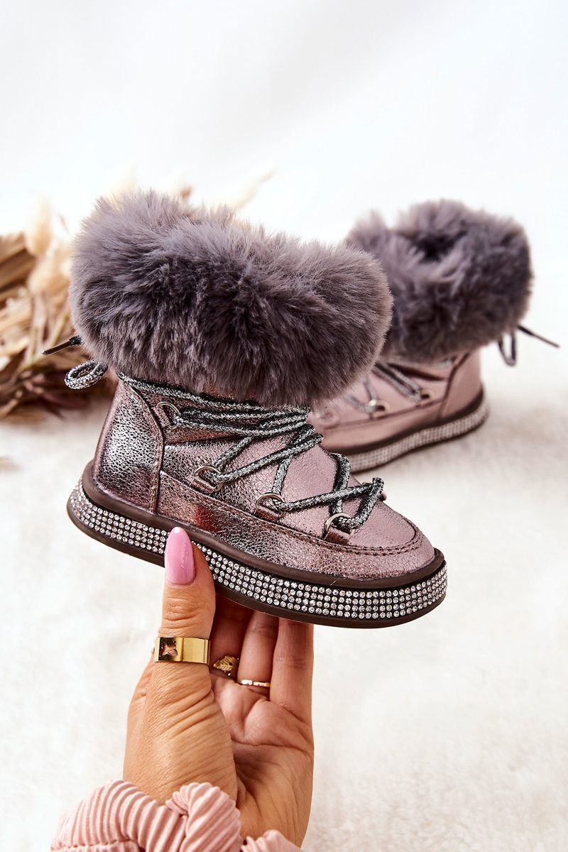 Dziecięce Śniegowce Z Futerkiem Szaro-Brązowe Grandis