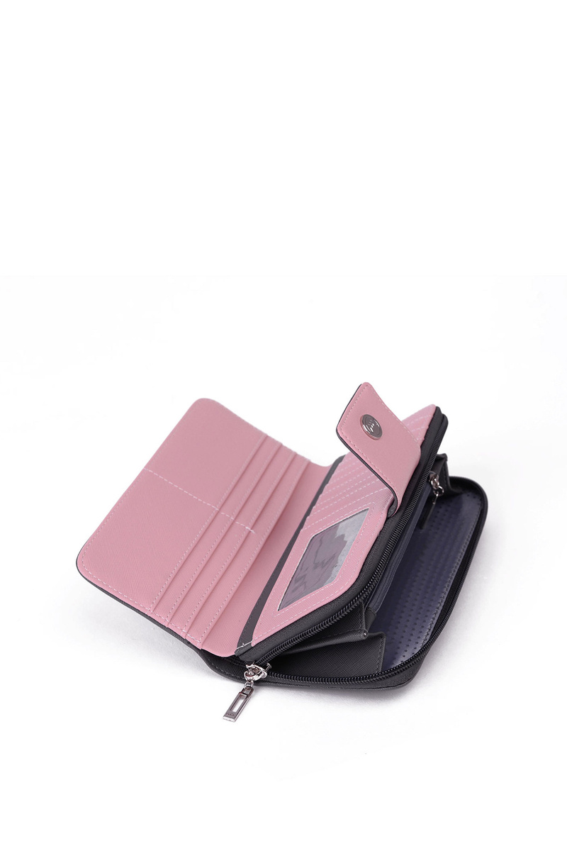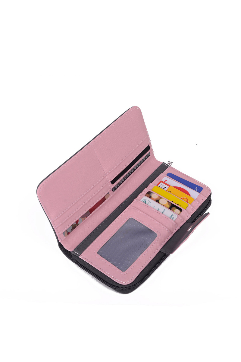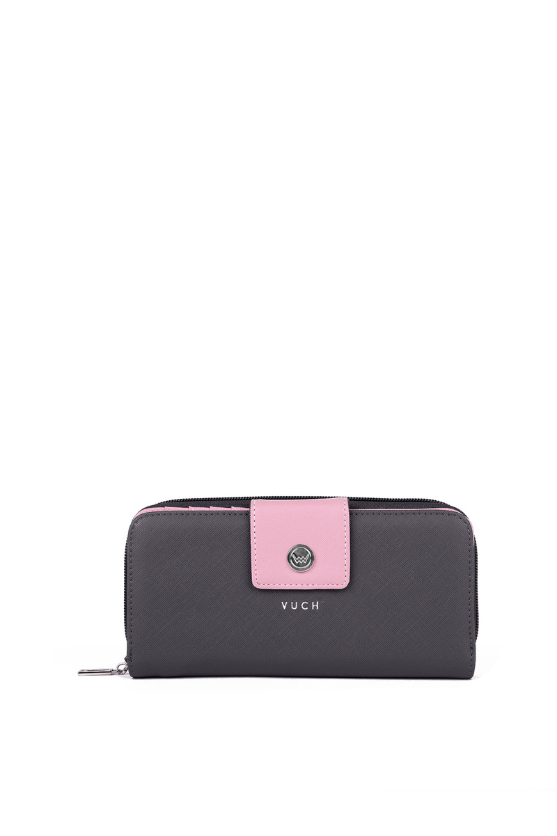 Duży Portfel Damski Na Suwak Szaro-Różowy Huntress