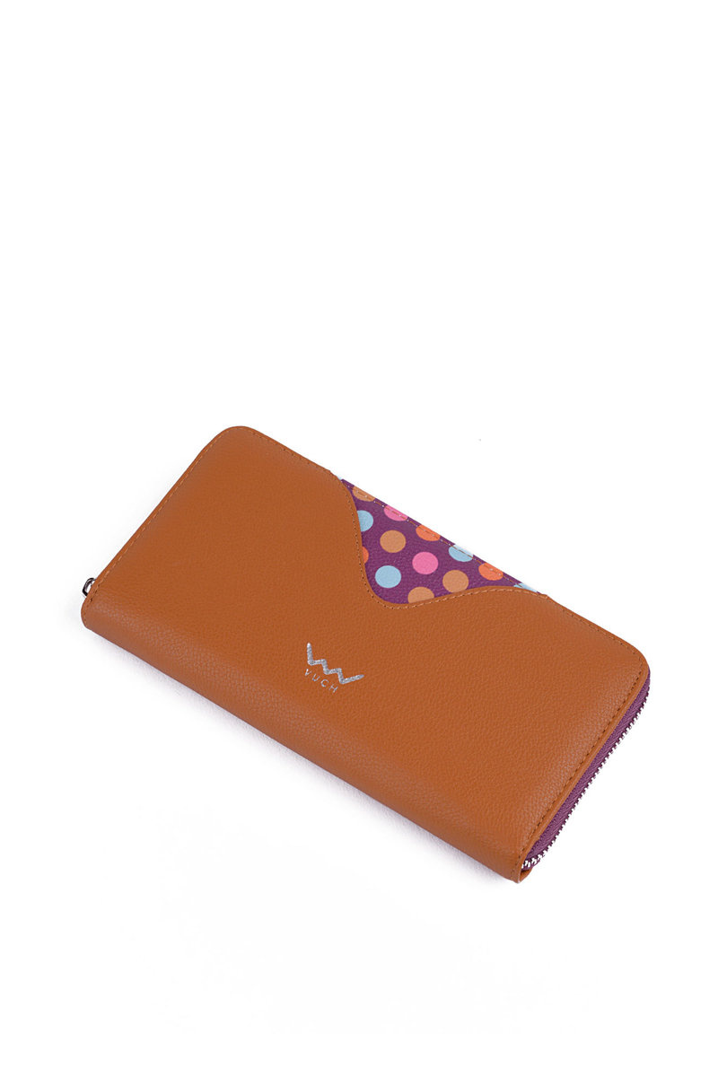 Duży Portfel Na Suwak W Kropki Brązowy Reine