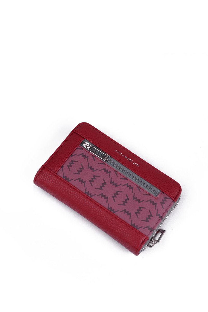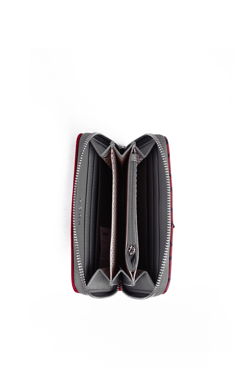 Skórzany Portfel Na Suwak Czerwono-Szary Merina