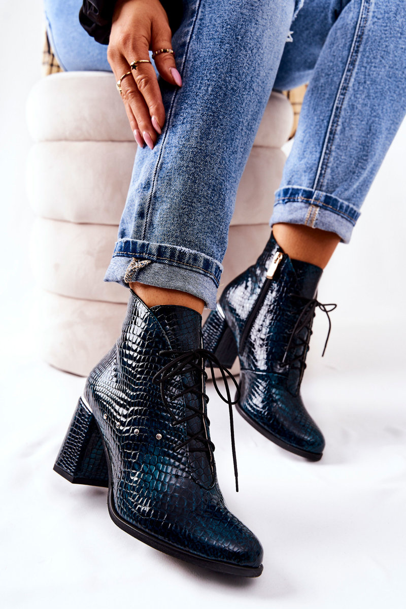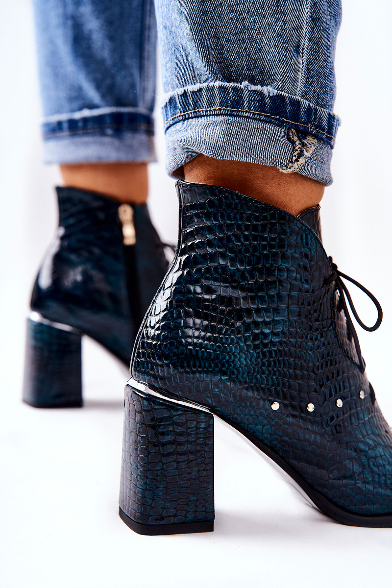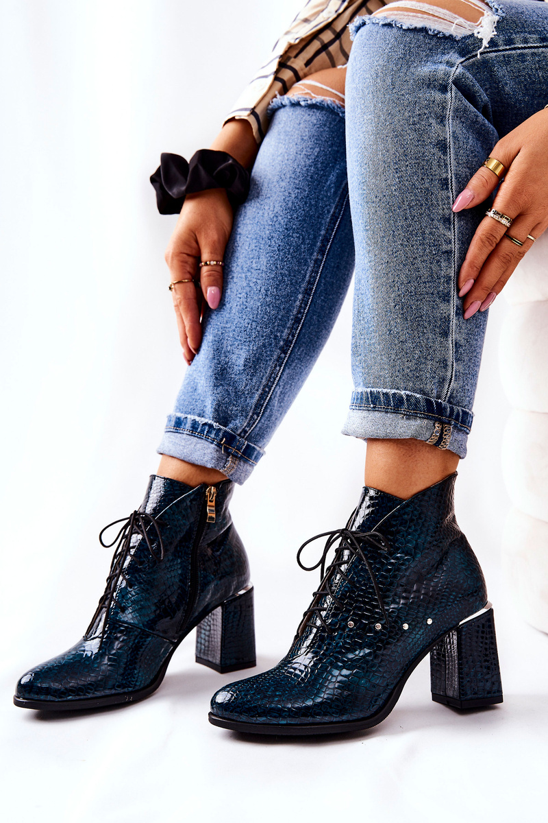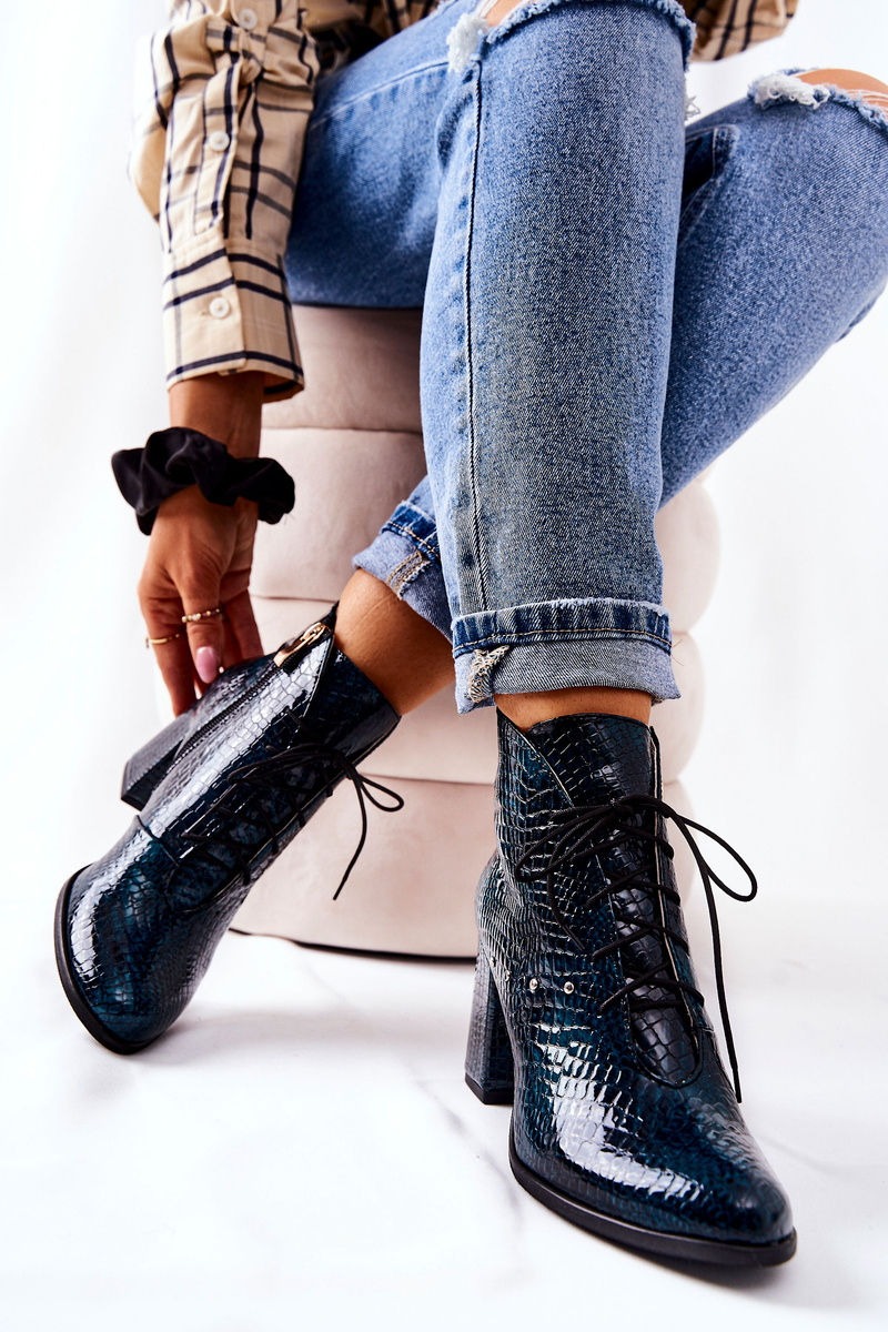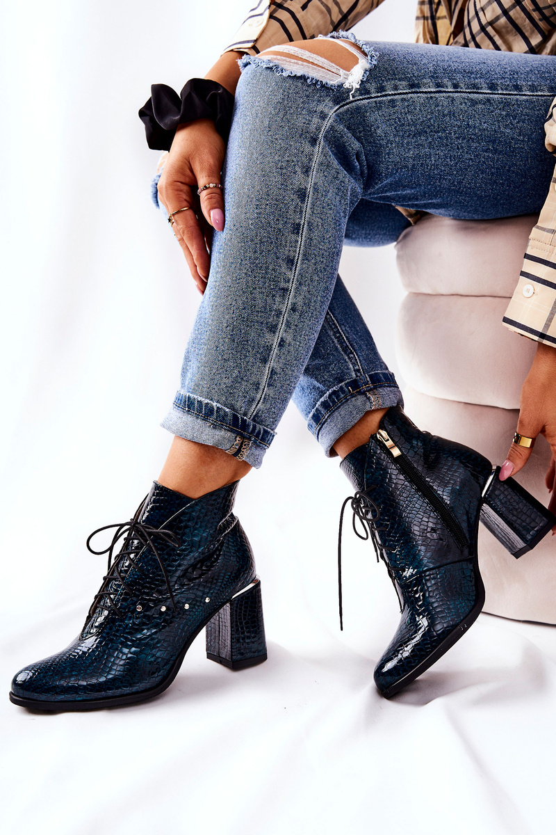 Damskie Skórzane Botki Na Słupku Zielone Neliko