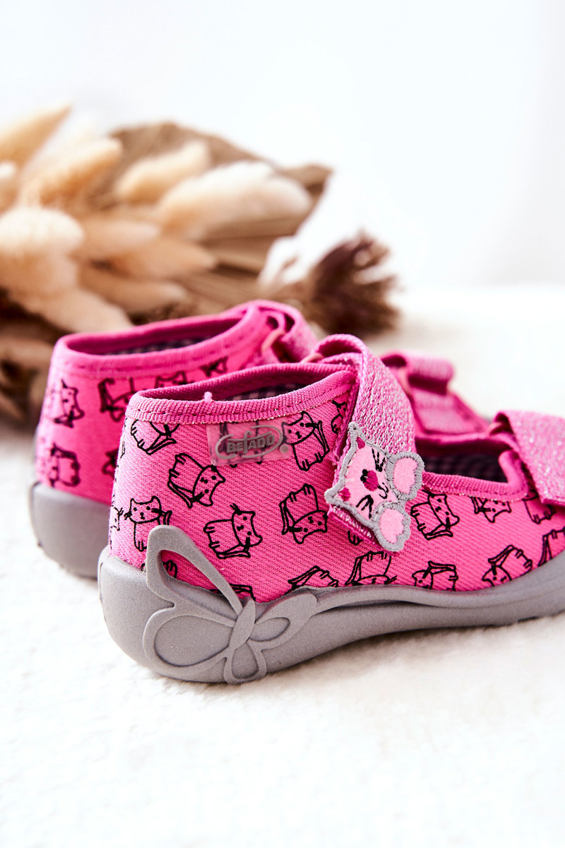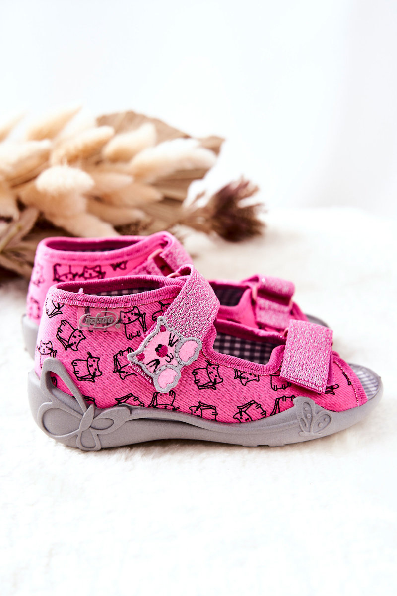 Sandałki Papcie Befado Na Rzep Kotki 242P103 Różowe