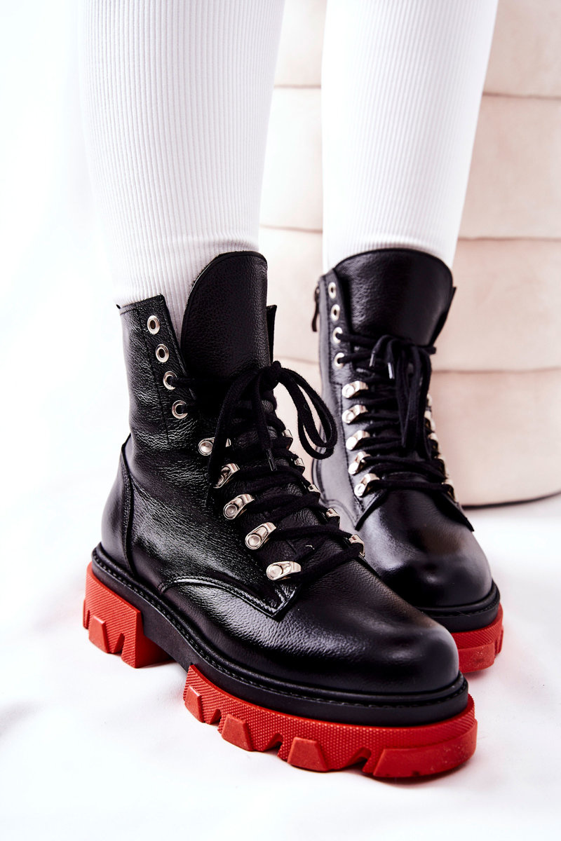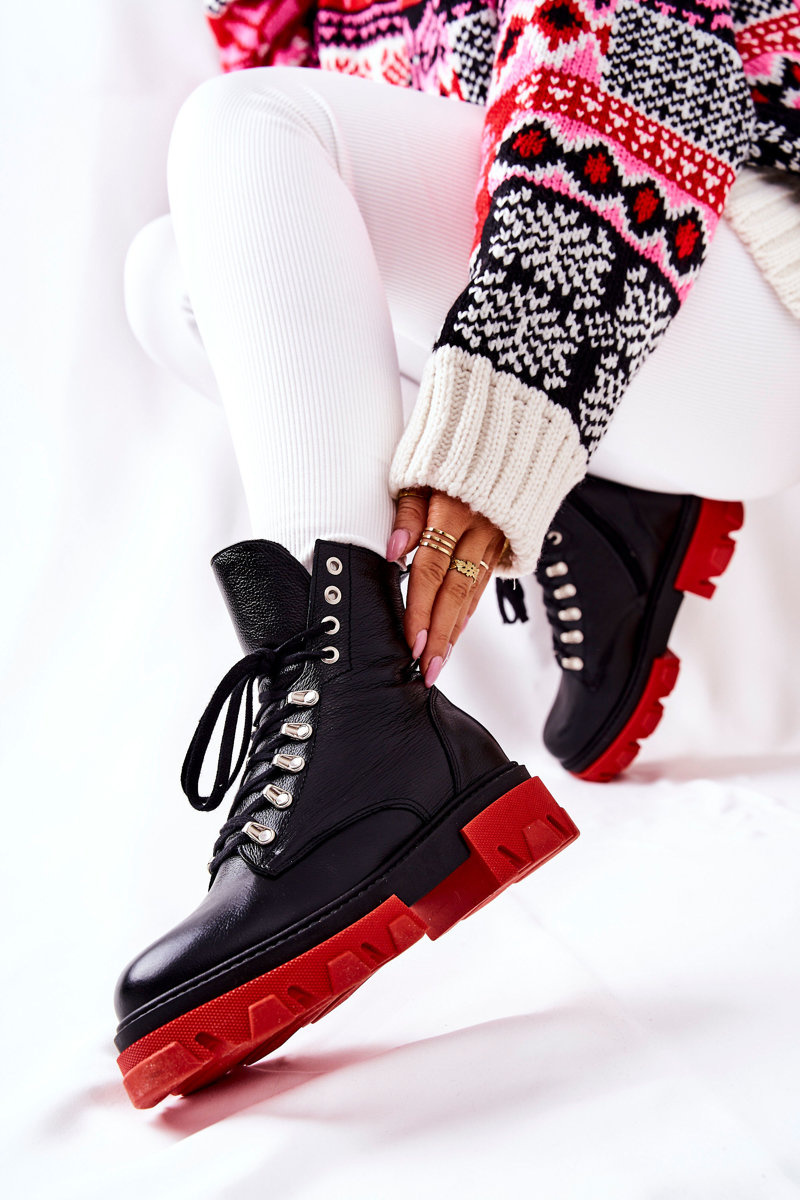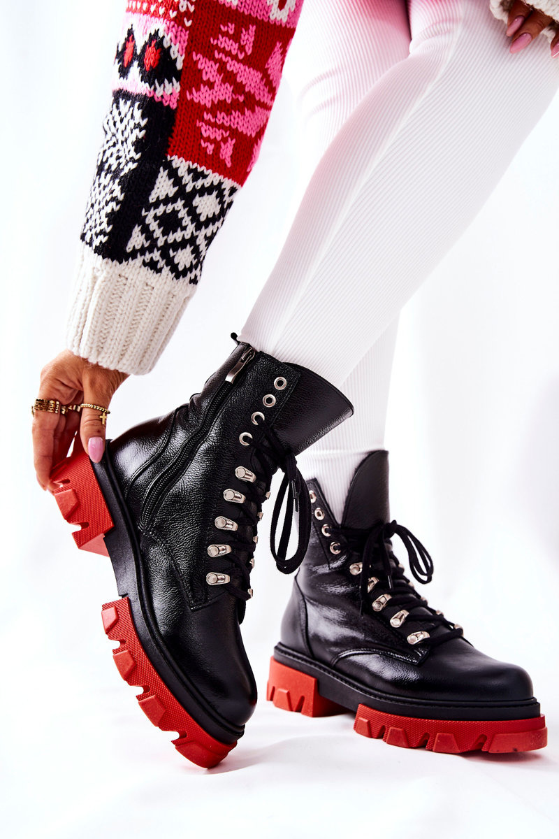 Ocieplane Skórzane Botki Workery Czarne Kelley