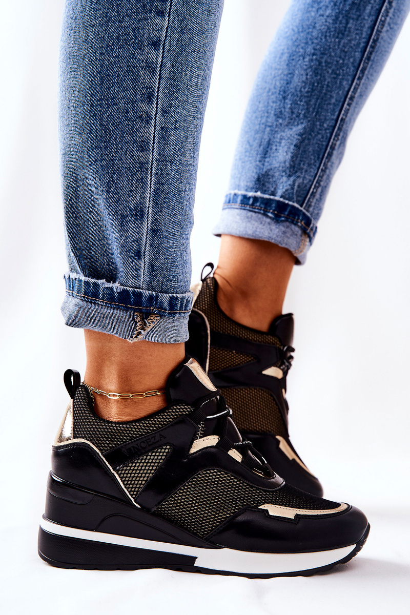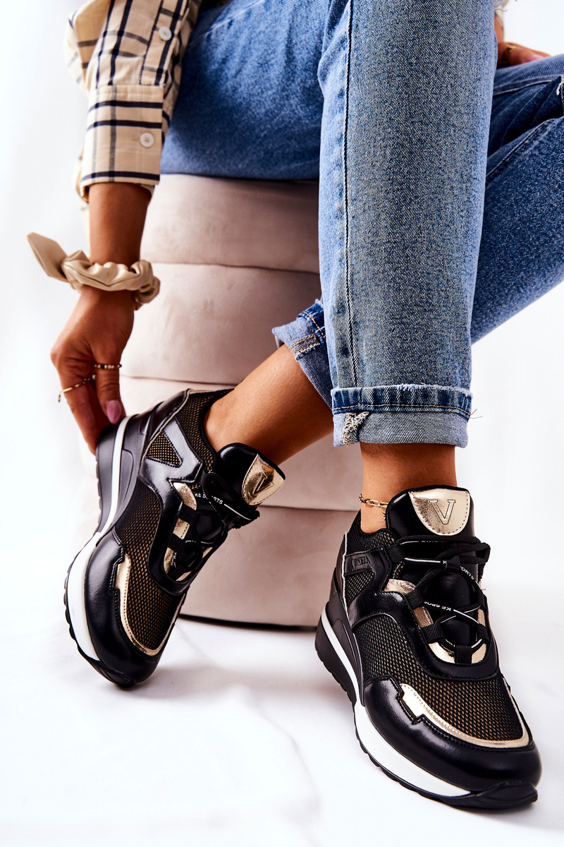 Sportowe Damskie Buty Sneakersy Czarno-Złote Colli