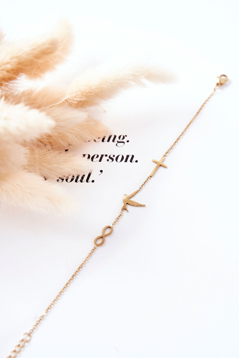 Każda stylizacja powinna zawierać dodatkowo akcesoria w postaci biżuterii. Piękna bransoletka na łańcuszku wykonana jest ze stali nierdzewnej z możliwością regulacji długości. Modny wzór z trzema motywami. Koniecznie sprawdź całą naszą kolekcję biżuterii i wybierz swój ulubiony dodatek.