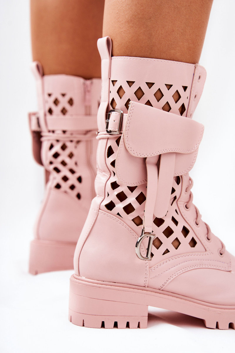 Ażurowe Botki Z Nerką Różowe Rock Star