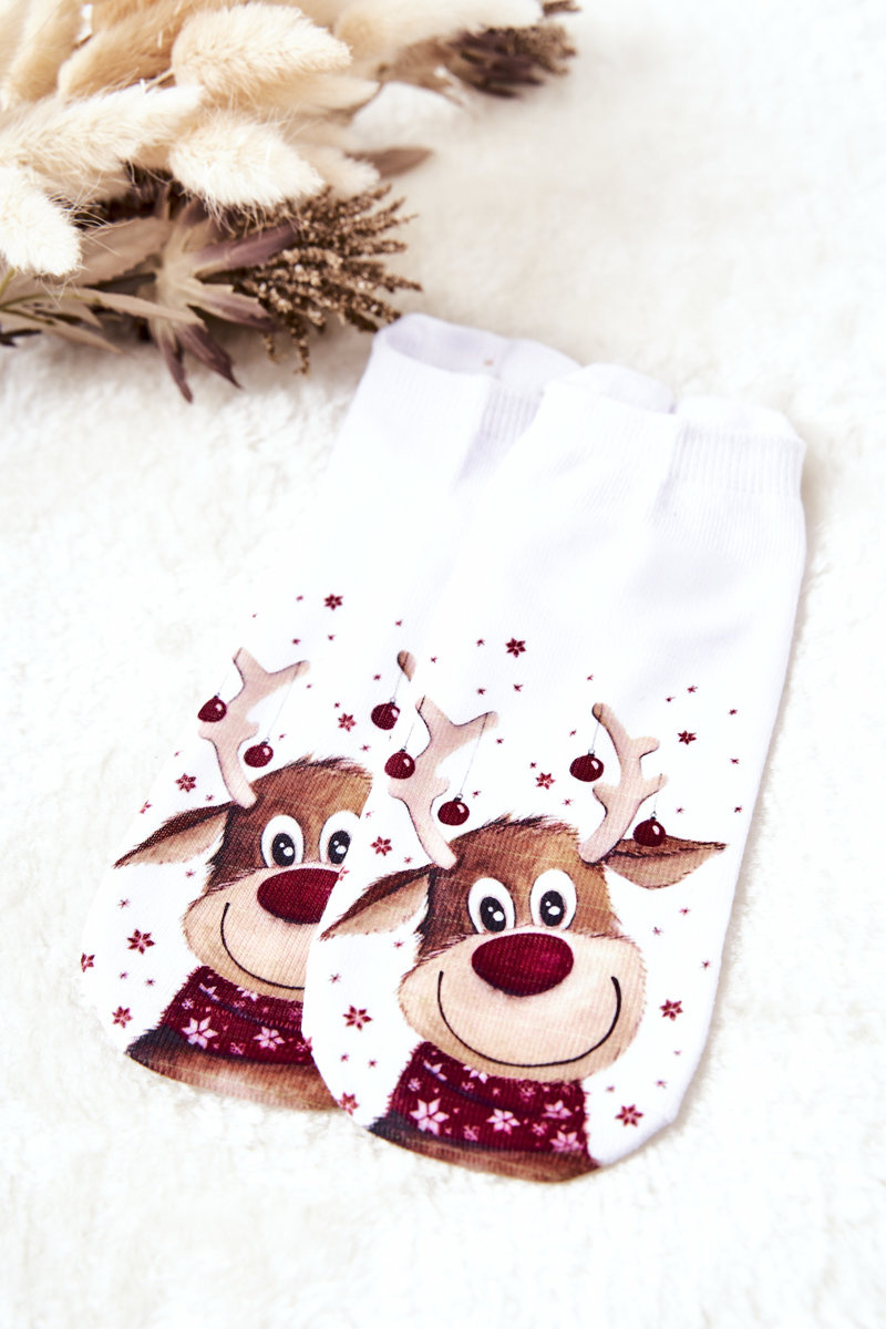 Skarpetki Stopki Renifer Z Bombkami Białe