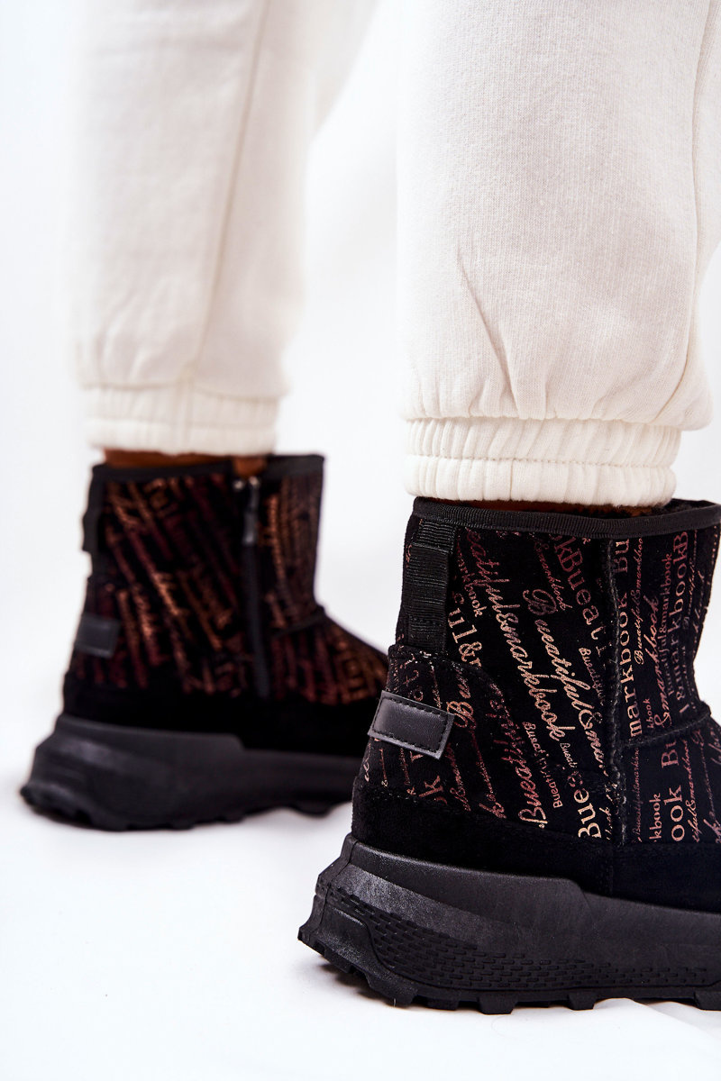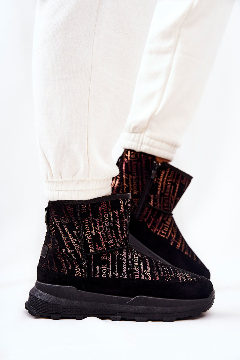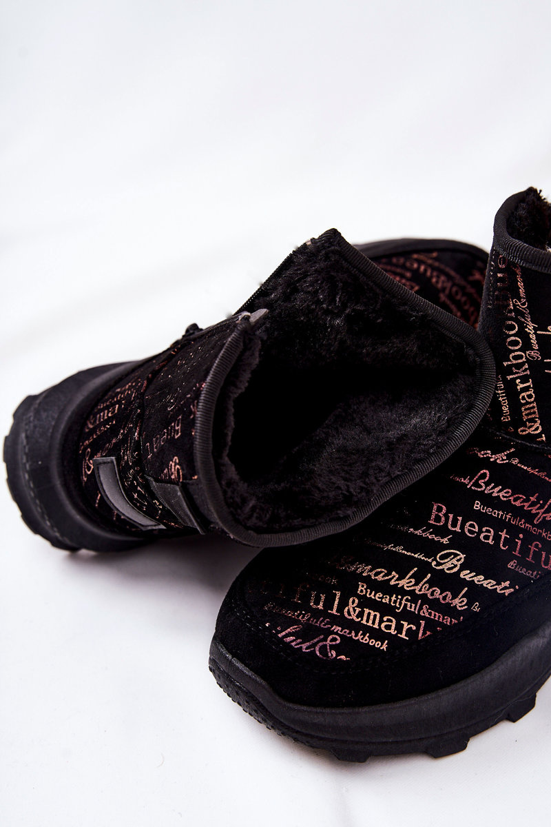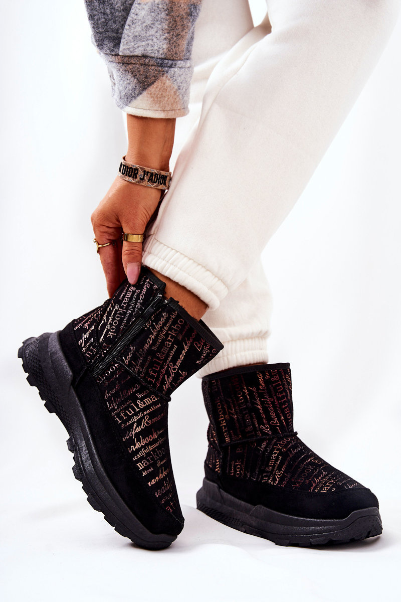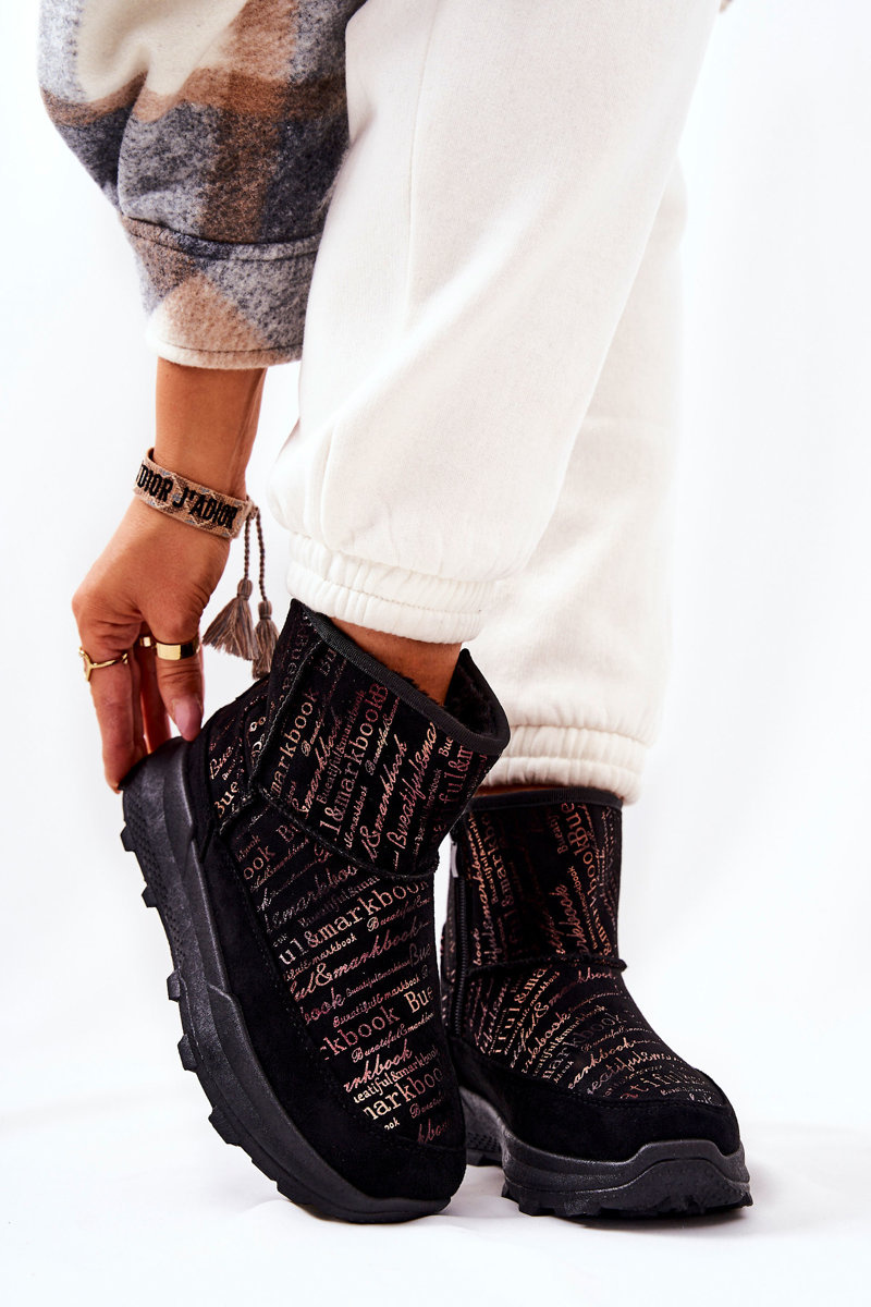 Ocieplane Śniegowce Z Printem Czarne Freesia