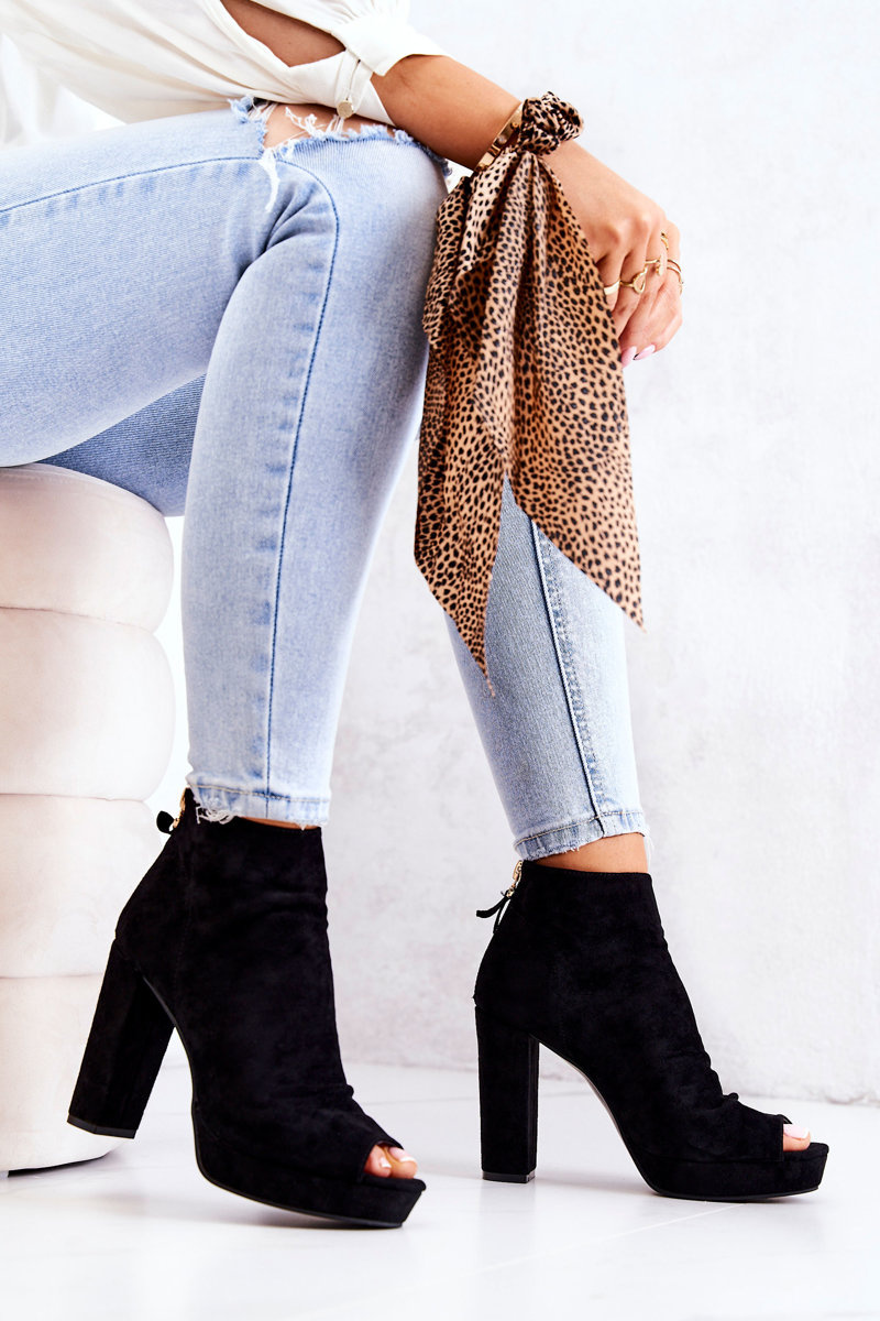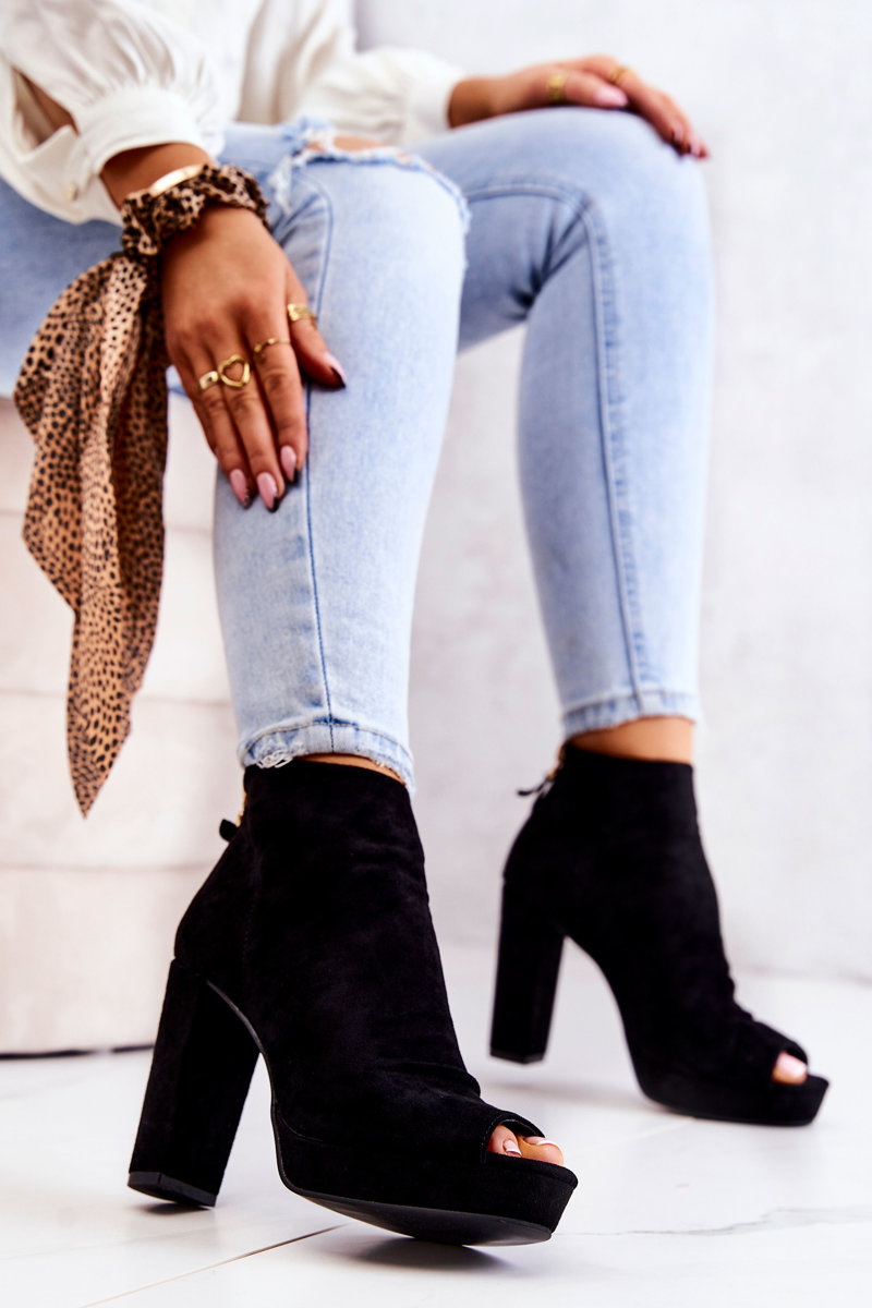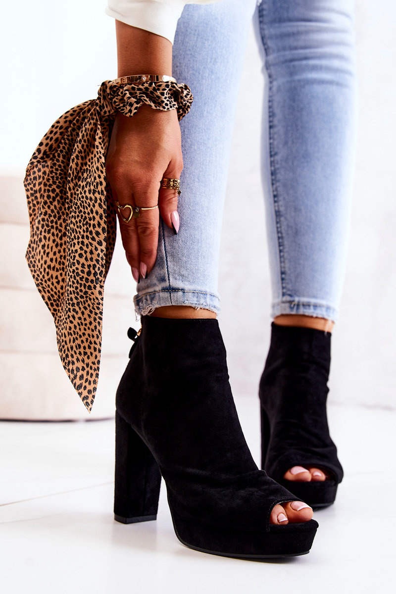 Botki Na Słupku Odkryte Palce Czarne Adore