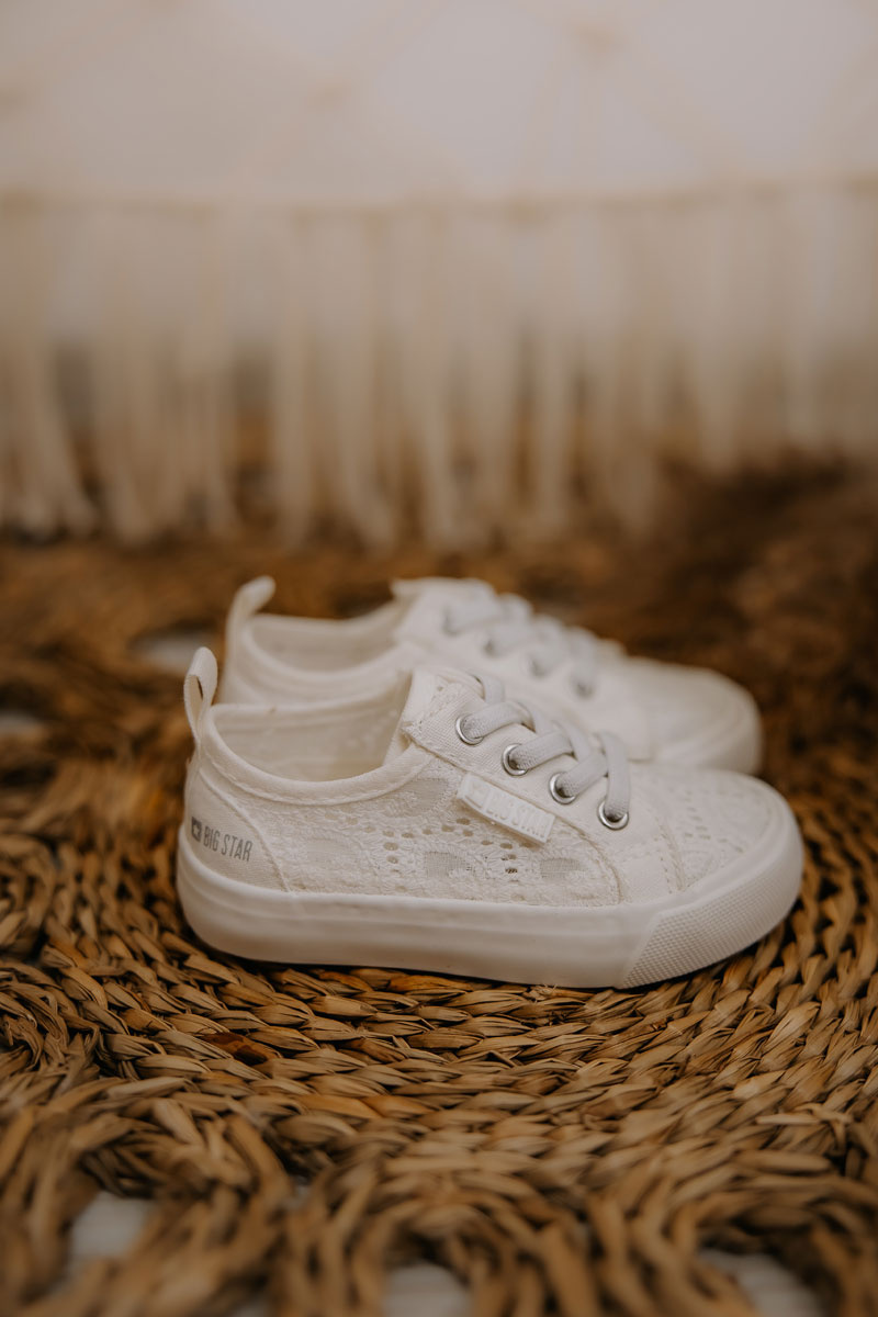 Cudowne trampki dziecięce marki BIG STAR. Trampki wykonane są z materiału tekstylnego w ażurowy wzór. Posiadają antypoślizgową podeszwę. Miękka wkładka zapewni komfort podczas noszenia. Trampki są wsuwane, posiadają gumki imitujące sznurówki. Z boku widnieje logo marki Big Star. Koniecznie sprawdź całą naszą kolekcję butów marki BIG STAR! Rozmiary 17-21 posiadają po 3 oczka do sznurówek, rozmiary 22-27 posiadają po 4 oczka, a rozmiary 28-35 posiadają po 5 oczek. Przy wyborze rozmiaru prosimy sugerować się tabelą rozmiarów.