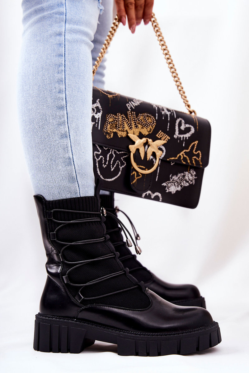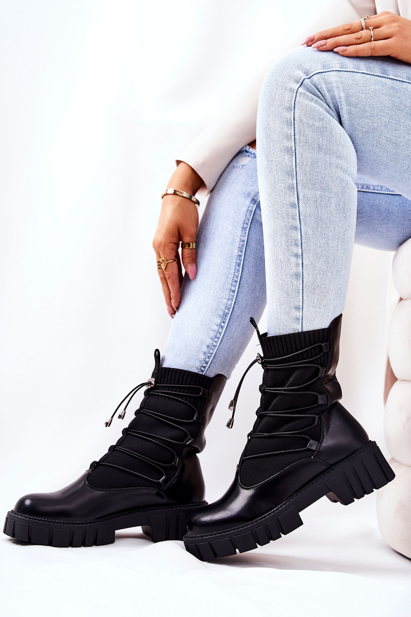 Świetne botki, które spełnią Twoje wymagania! Miękka skarpetowa cholewka oraz masywna podeszwa - ten model wyrazi Twój charakter! Modny fason z gumką ze ściągaczem u góry cholewki. Wykonane z eko skóry oraz tkaniny. Delikatne ocieplenie w postaci futerka zapewni ochronę przed zimnem. Koniecznie musisz je mieć! Przy wyborze rozmiaru prosimy sugerować się tabelą rozmiarów.