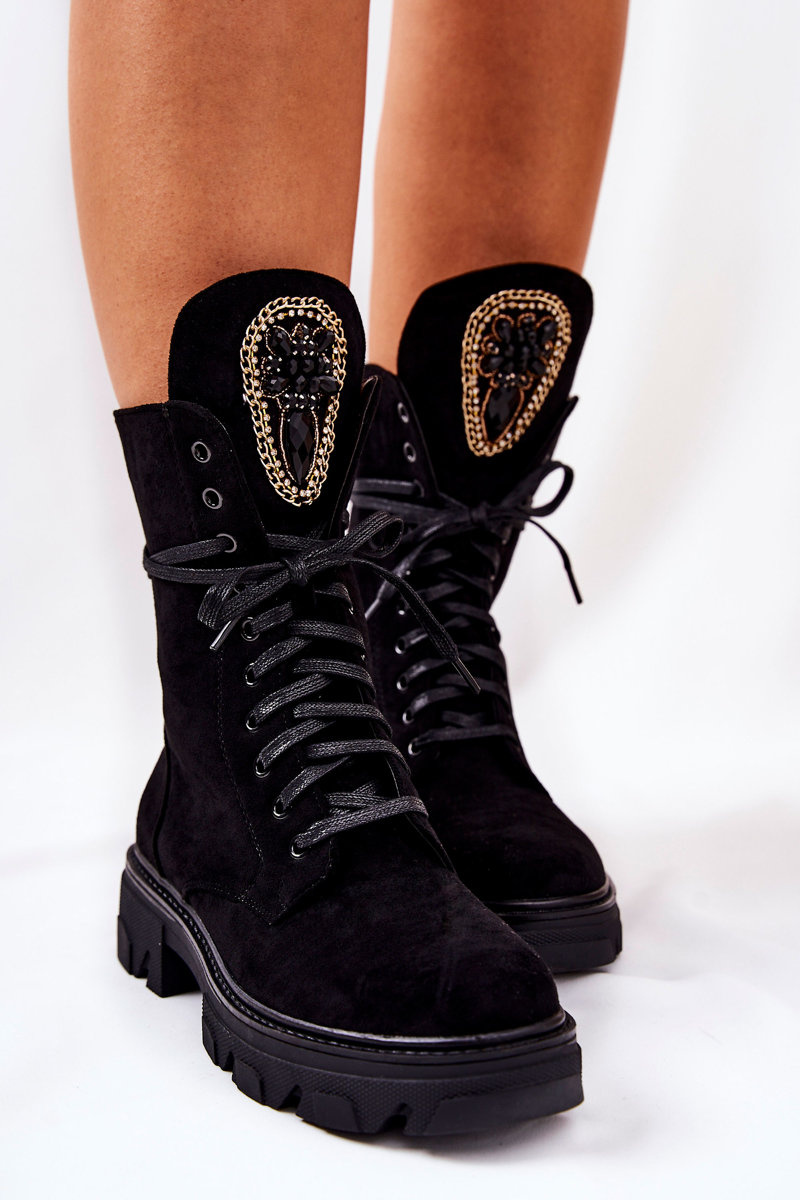 Zamszowe Botki Ze Zdobieniem Czarne Elaina
