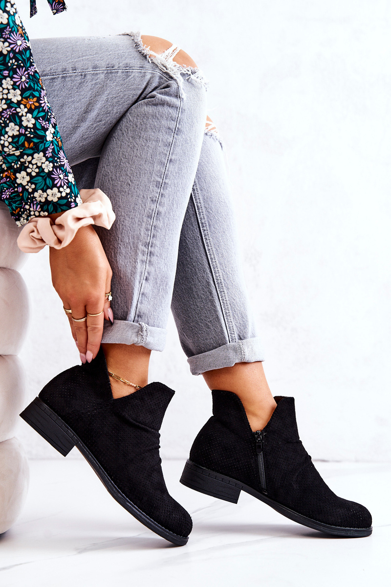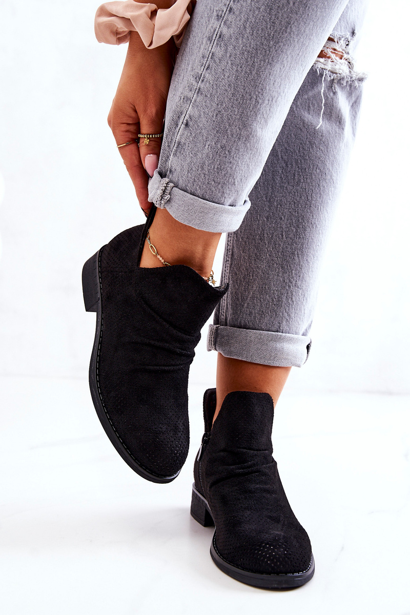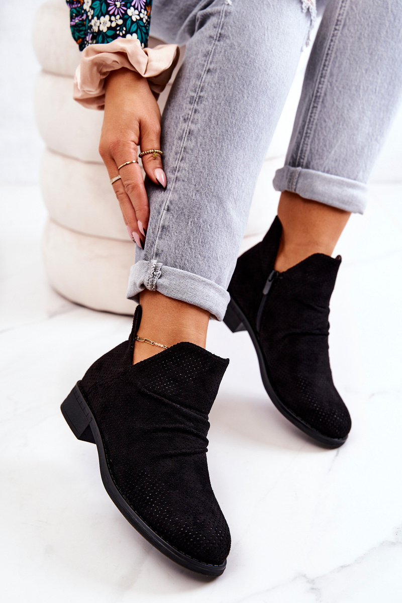 Ażurowe Marszczone Botki Czarne Cynthia