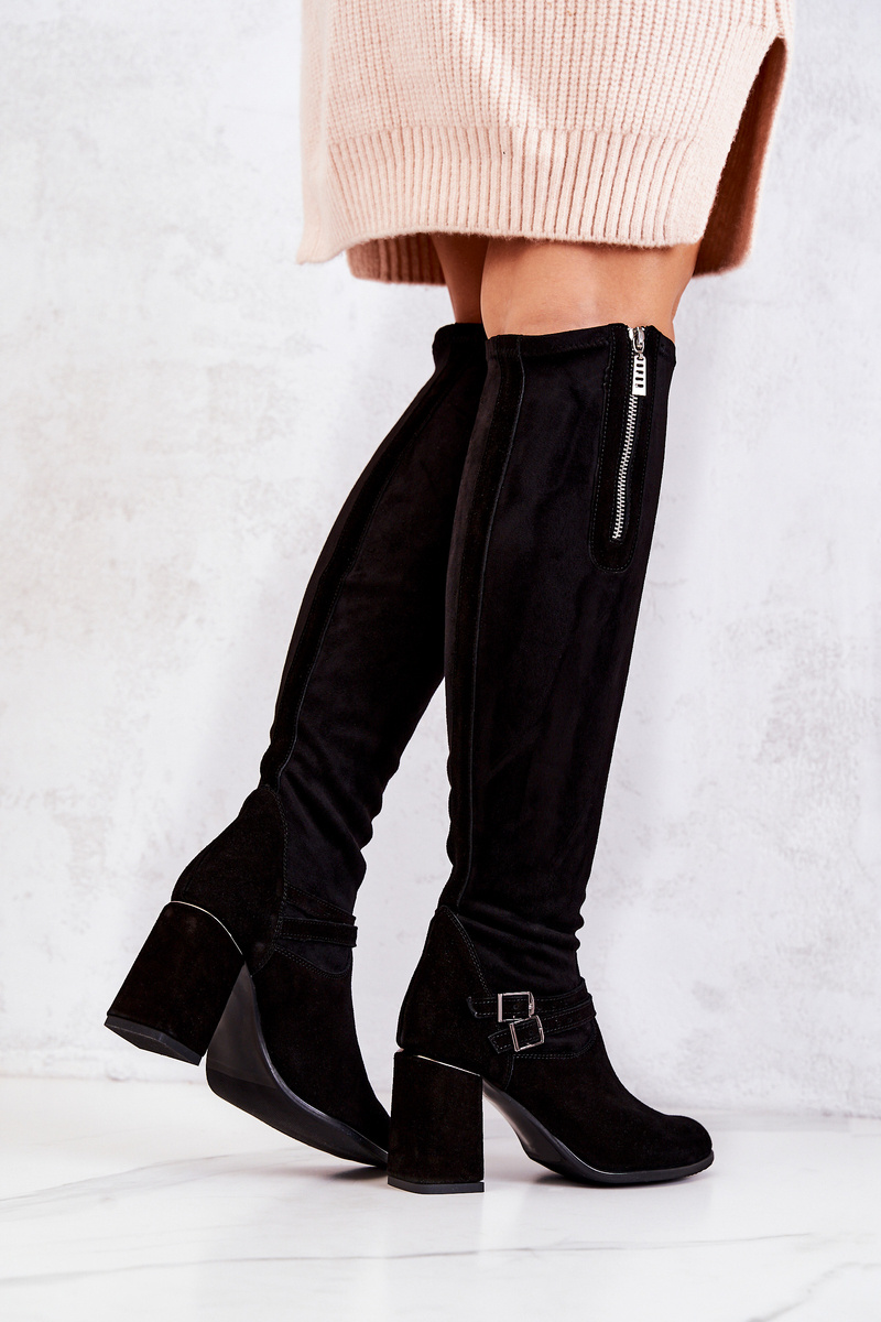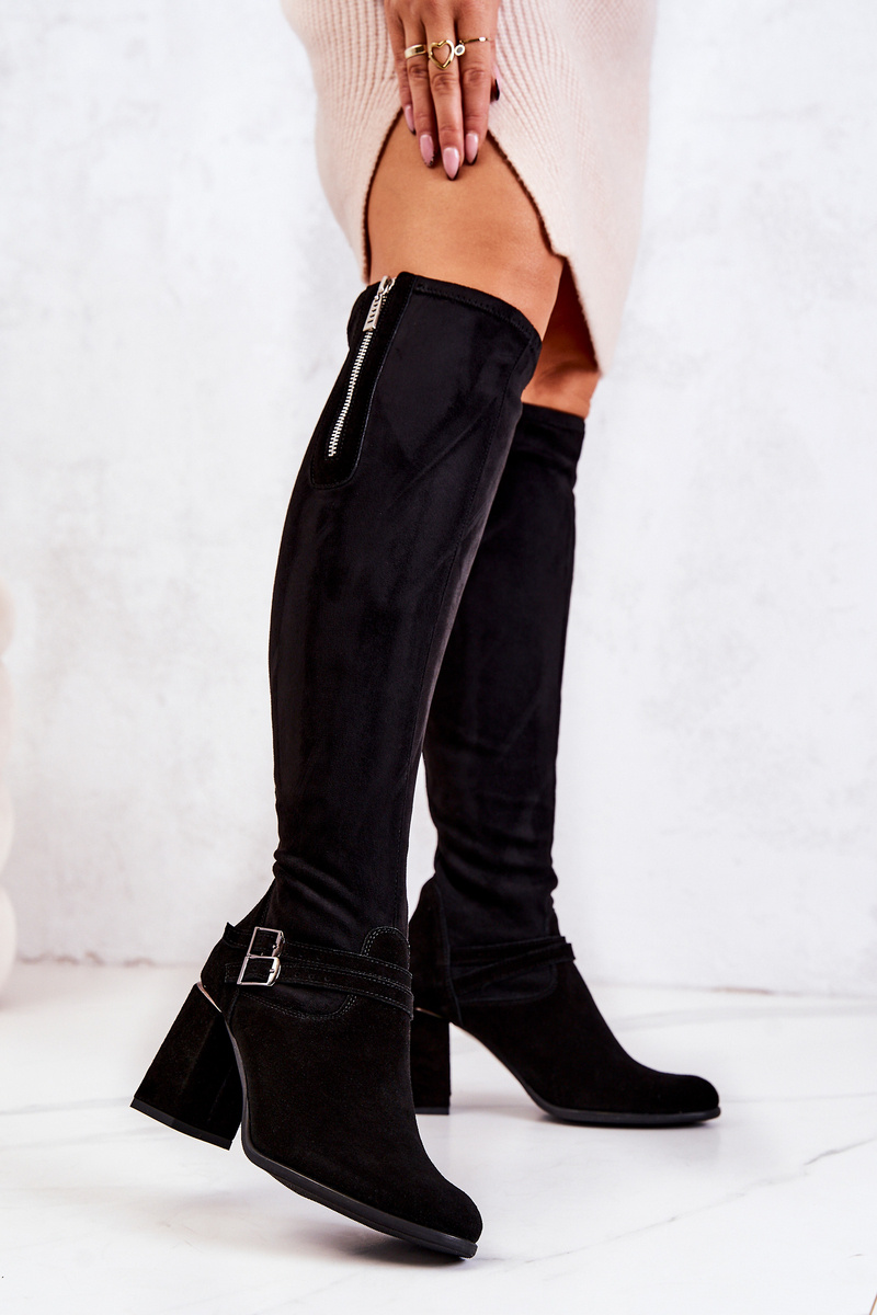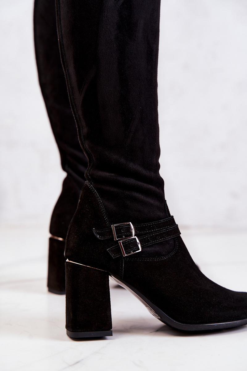 Zamszowe Kozaki Na Obcasie Czarne Arianne