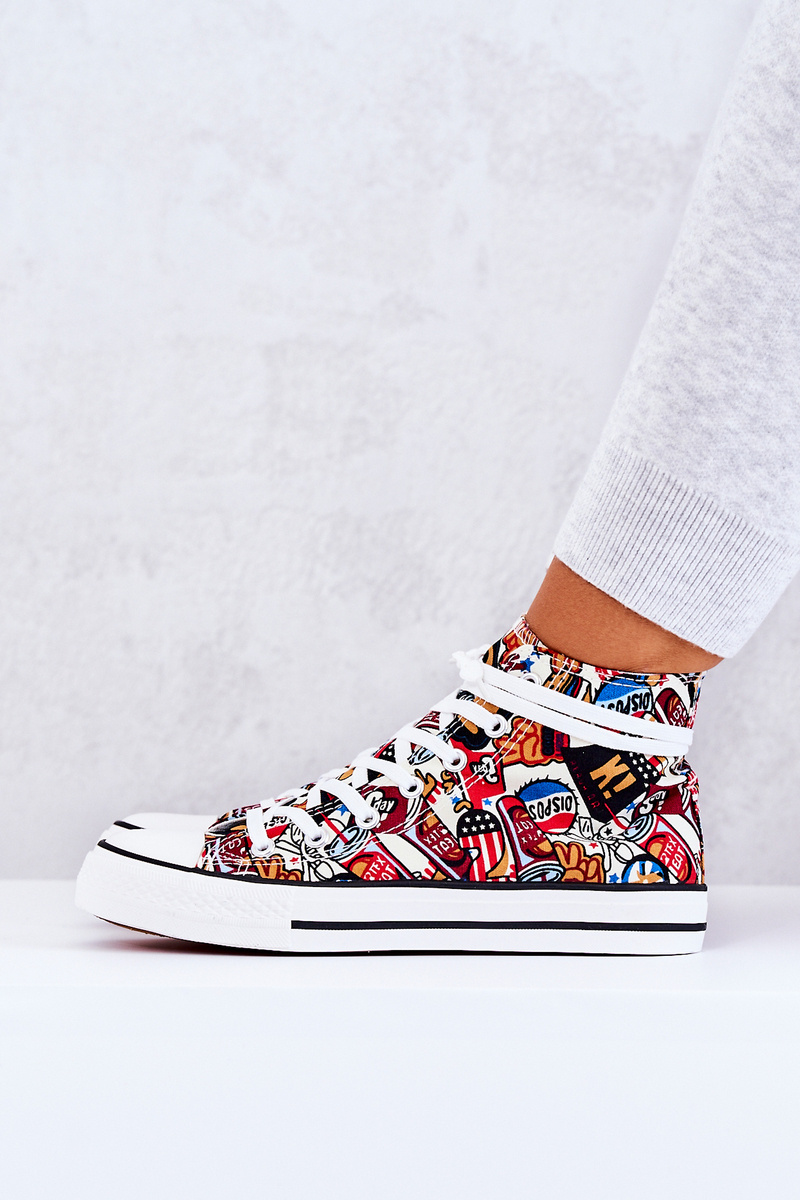 Wysokie trampki w klasycznej formie i modnym wzorze. Kultowe trampki pasują do wielu stylizacji. Buty dobrze dopasowują się do kształtu stopy, posiadają miękką, materiałową wkładkę oraz antypoślizgową podeszwę. Model wiązany z wyższą cholewką. Nosek gumowy. Koniecznie sprawdź całą naszą kolekcję damskich trampek. Przy wyborze rozmiaru prosimy sugerować się tabelą rozmiarów.