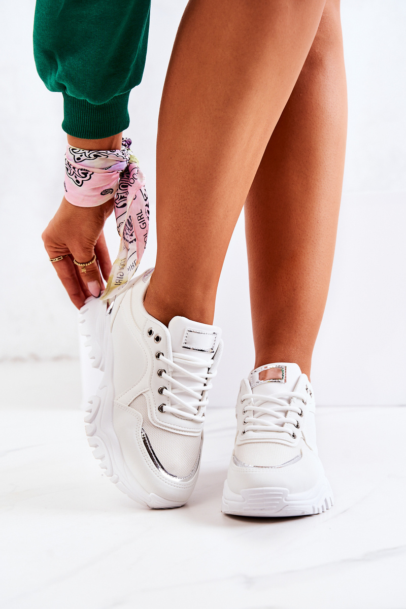 Buty sportowe typu sneakers zostały wykonane z eko skóry oraz materiału tekstylnego. O Twój komfort zadba miękka, materiałowa wkładka. Buty posiadają klasyczne wiązanie oraz masywną podeszwę chroniącą przed zimnym podłożem. Na przodzie oraz z tyłu obuwia znajdują się lustrzane elementy. Przy wyborze rozmiaru prosimy kierować się tabelą rozmiarów.