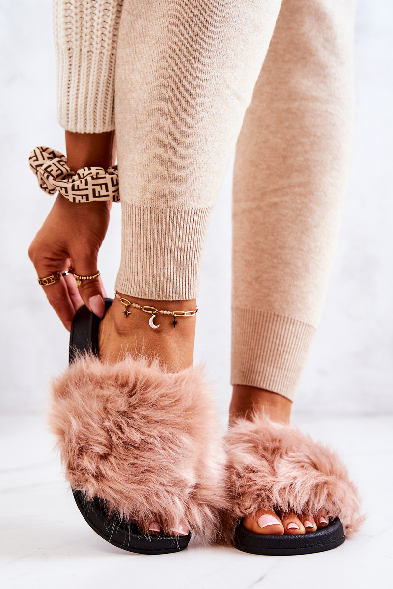 Klapki Z Futerkiem Gumowe Brudny Róż Pollie