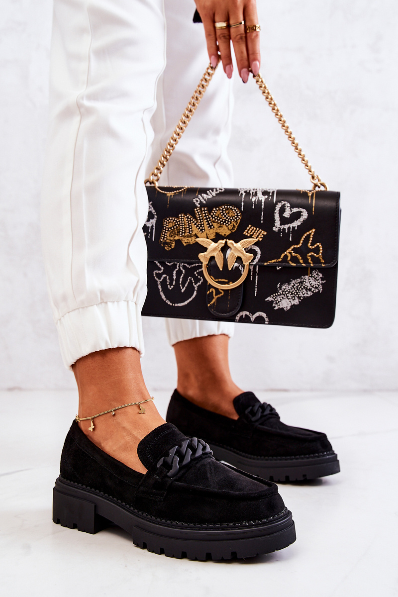 Zamszowe Półbuty Loafery La.Fi Czarne Sapphira