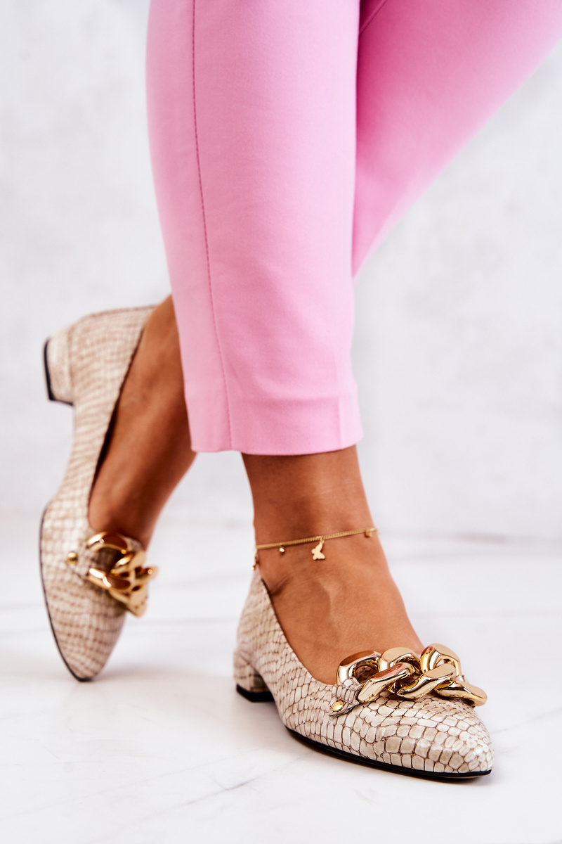Skórzane Lakierowane Wężowe Czółenka Beżowe Elissabeth