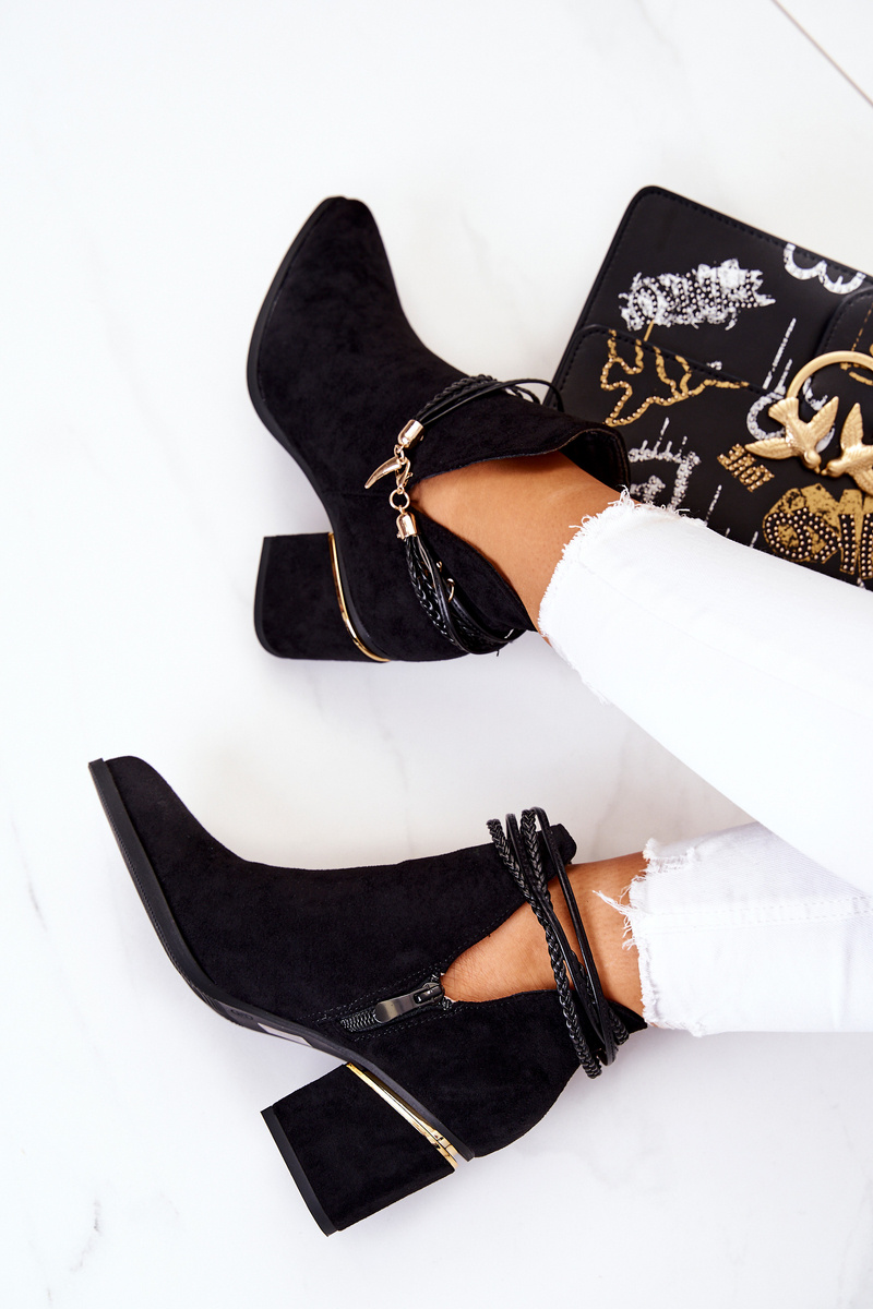 Zamszowe Botki Kowbojki Z Paskami Czarne Inessa
