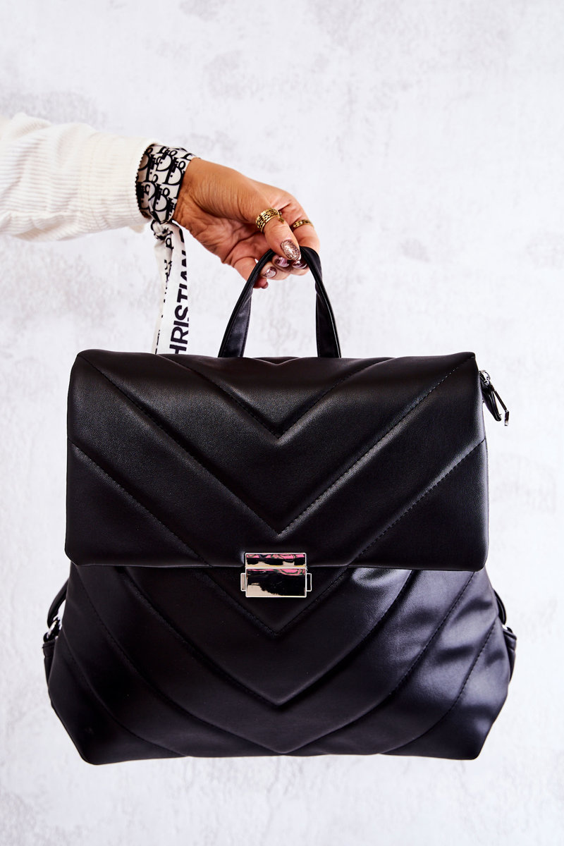 Skórzany Duży Pikowany Plecak Czarny Gwendie