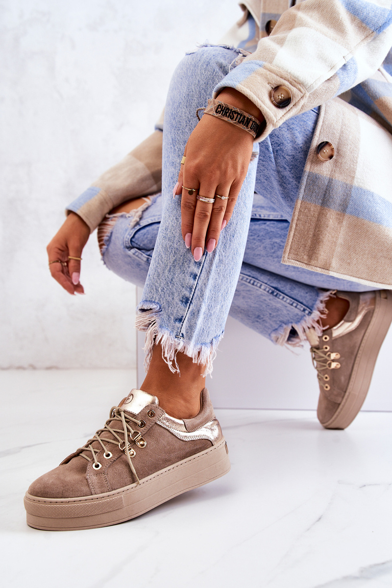 Zamszowe Buty Sportowe Na Platformie Beżowe Mary Ann