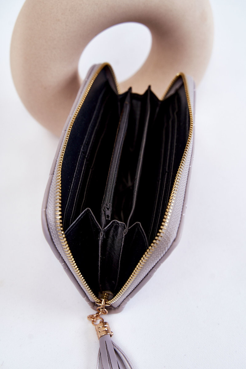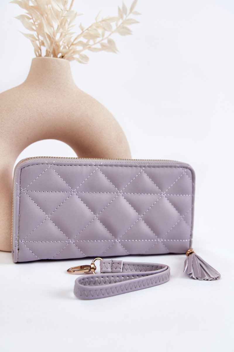 Duży Pikowany Portfel Z Paseczkiem Szary Jeffrey