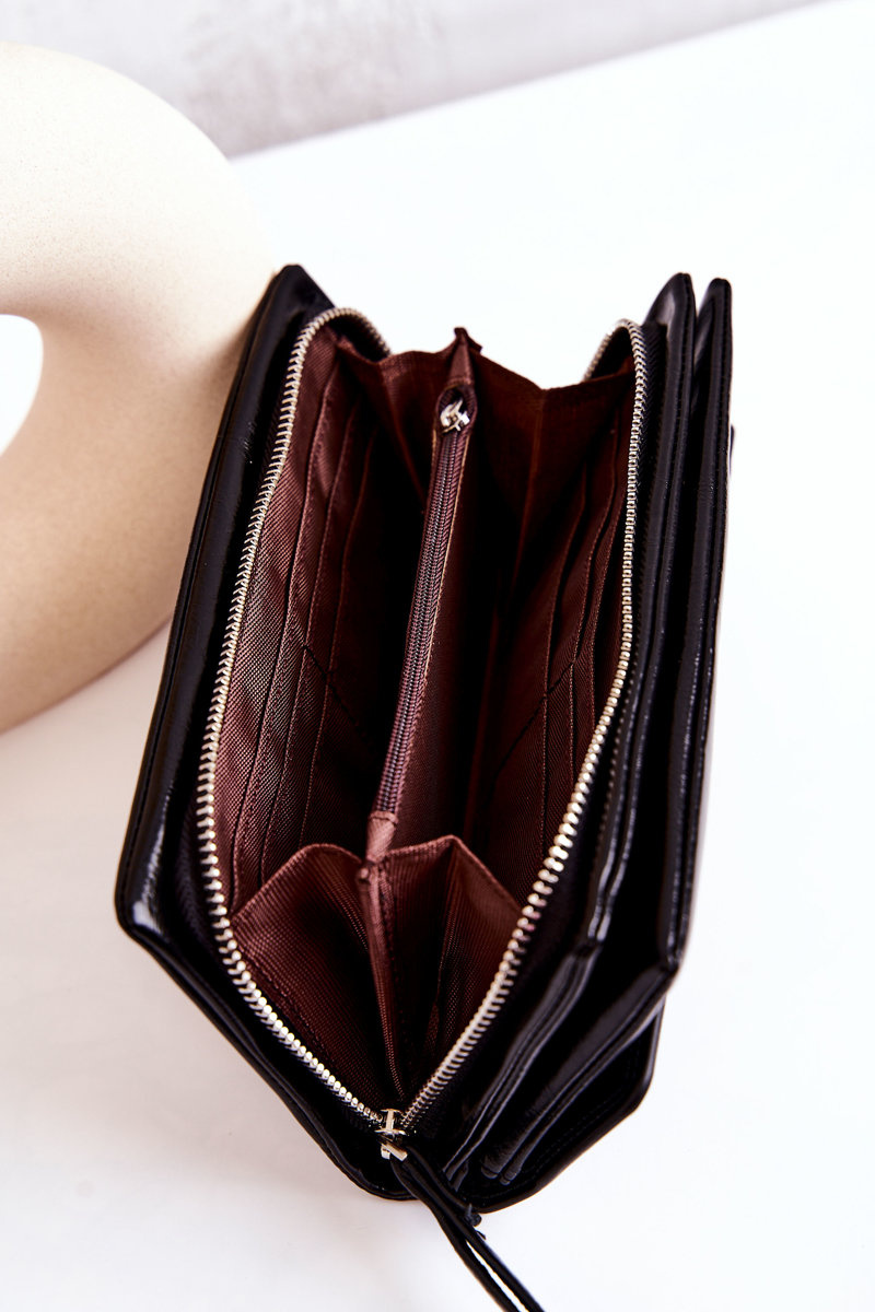 Duży Skórzany Portfel Na Suwak Czarny Loreaine