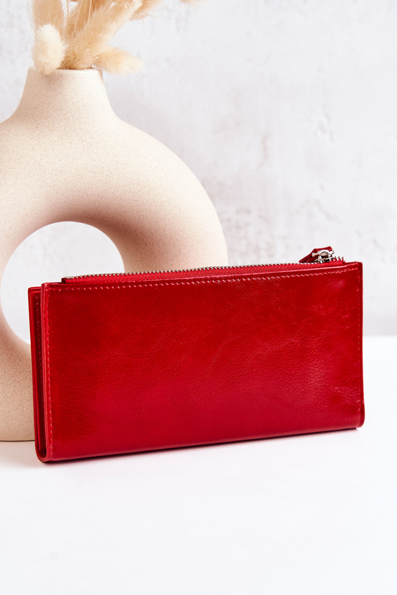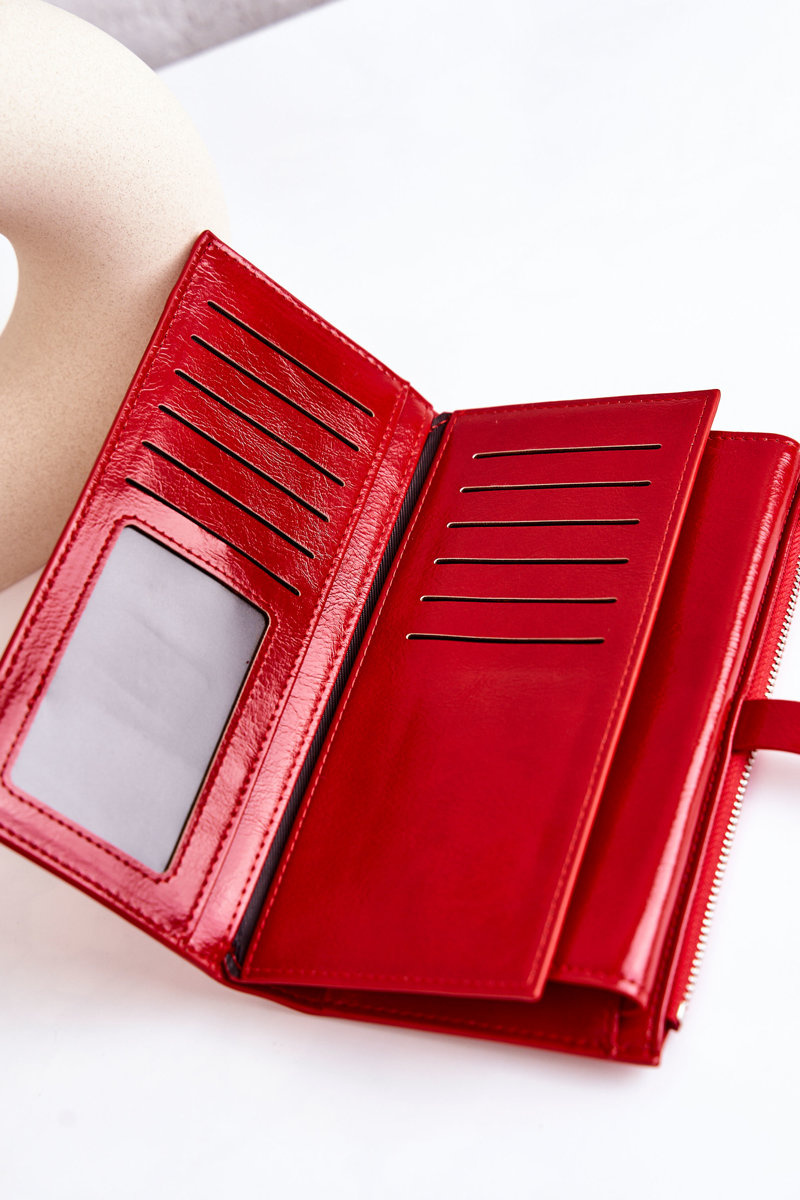 Duży Skórzany Portfel Na Magnes Czerwony Nereva