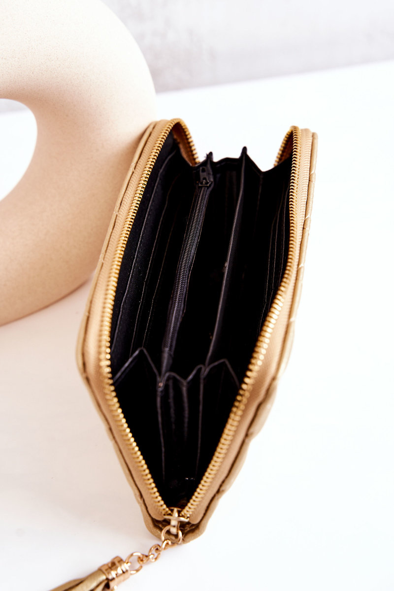 Duży Pikowany Portfel Z Frędzelkiem Złoty Selley