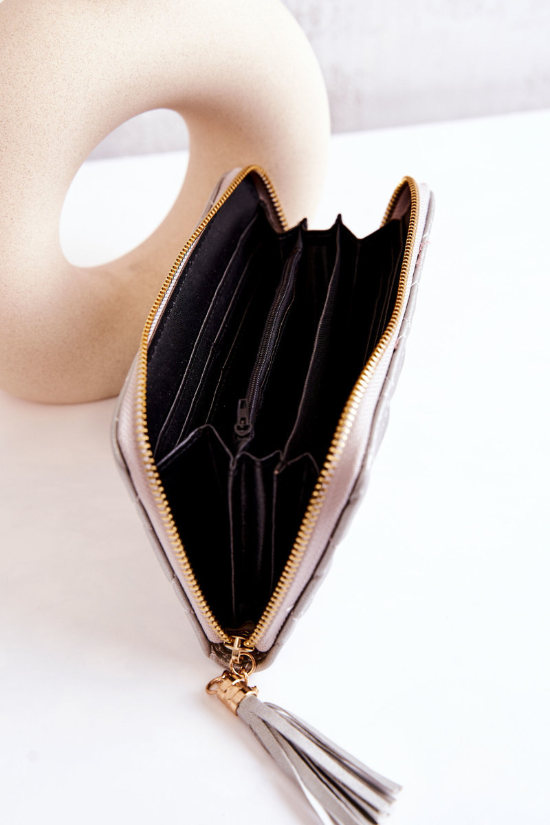 Duży Pikowany Portfel Z Frędzelkiem Srebrny Selley