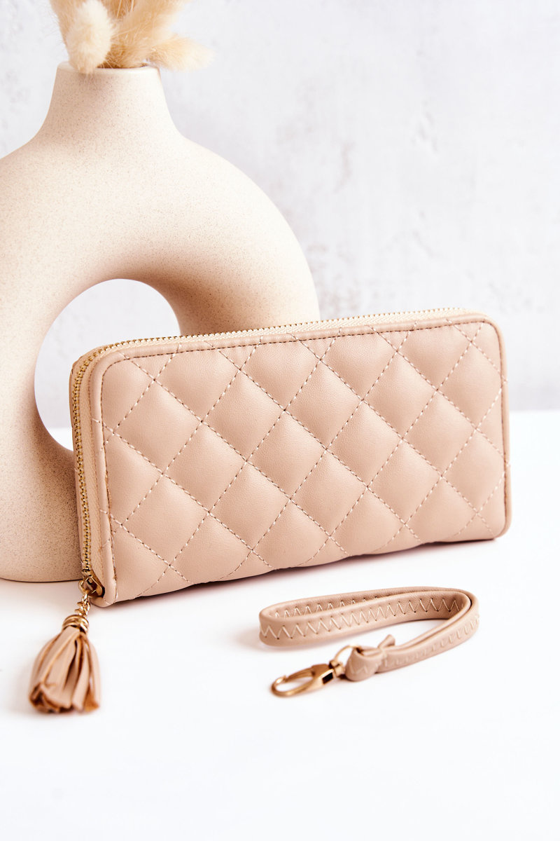 Duży Pikowany Portfel Z Frędzelkiem Beżowy Selley