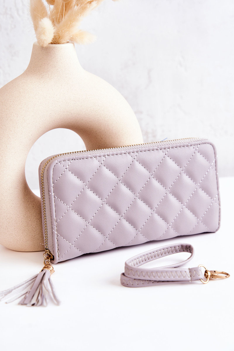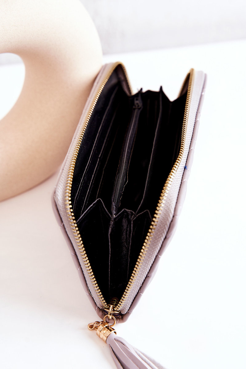 Duży Pikowany Portfel Z Frędzelkiem Szary Selley